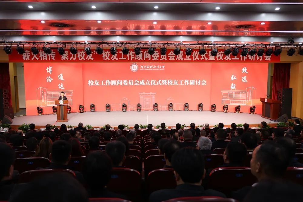 11月18日,在河南财经政法大学建校75周年之际,学校在郑东校区举行“薪火相传 聚力校友”校友工作顾问委员会成立仪式暨校友工作研讨会。河南省人民政府原副省长、省人大常委会原副主任、党组副书记、省总工会原主席张大卫,上海市高级人民法院原党组书记、院长刘晓云,河南省人大教科文卫委原主任、省教育厅原厅长朱清孟,平顶山市委书记陈向平,河南省人大常委会法工委主任李哲,河南省高级人民法院党组副书记、常务副院长郭保振,濮阳市政协主席徐慧前等省市领导,学校离退休老领导、现职领导、校友代表、师生代表、地方校友分会代表以及关心和支持学校发展的各界嘉宾齐聚一堂,共贺学校建校75周年华诞。大会由副校长朱金瑞主持。