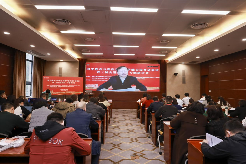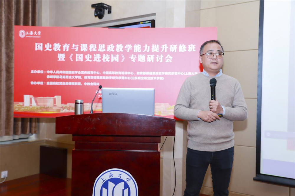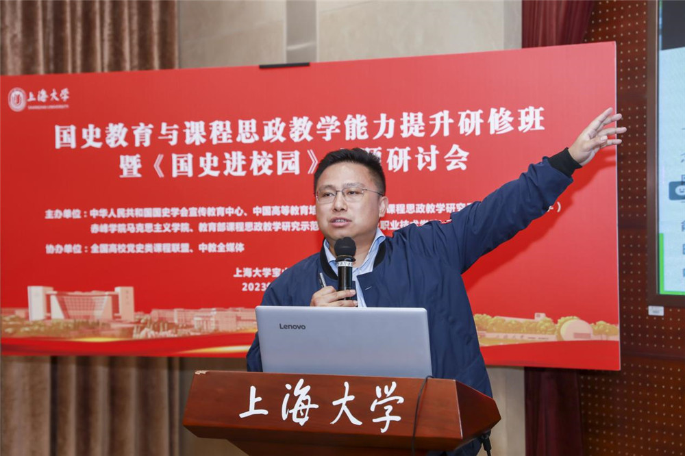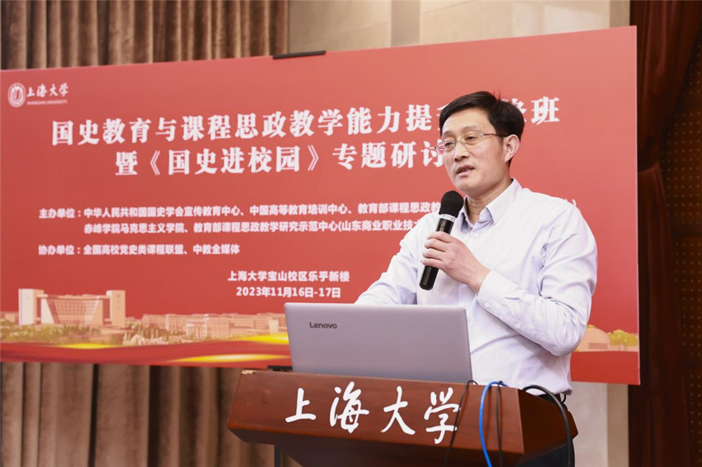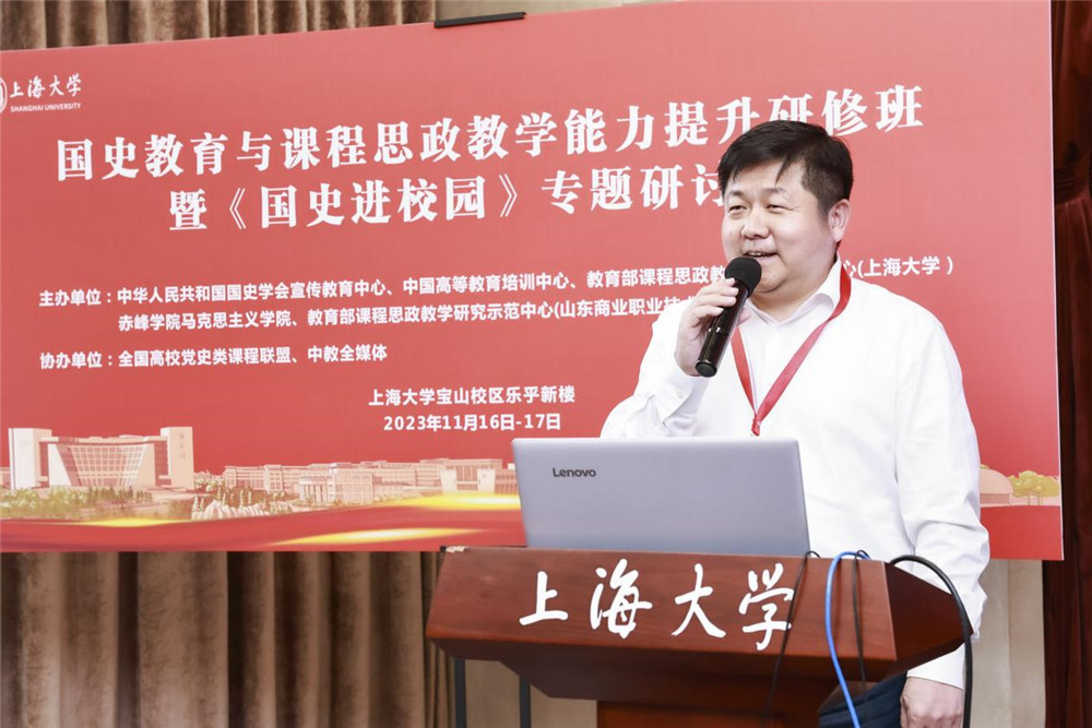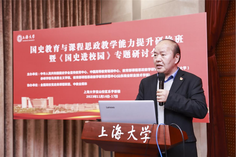 11月16日,《国史进校园》专题研讨会在上海大学召开,会议主题为“遵循爱国主义教育法,推进‘五史’与课程深度融合”。本研讨会由中华人民共和国国史学会、中国高等教育学会指导,中华人民共和国国史学会宣传教育中心、中国高等教育培训中心、教育部课程思政教学研究示范中心(上海大学)、赤峰学院马克思主义学院、教育部课程思政教学研究示范中心(山东商业职业技术学院)主办,全国高校党史类课程联盟、中教全媒体协办。来自上海大学、赤峰学院、深圳职业技术大学、山东商业职业技术学院、嘉兴职业技术学院等学校的60余位代表参加会议。