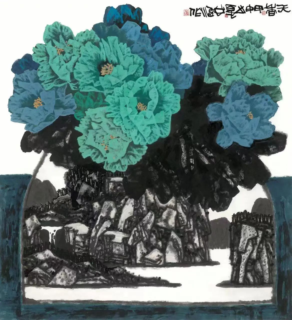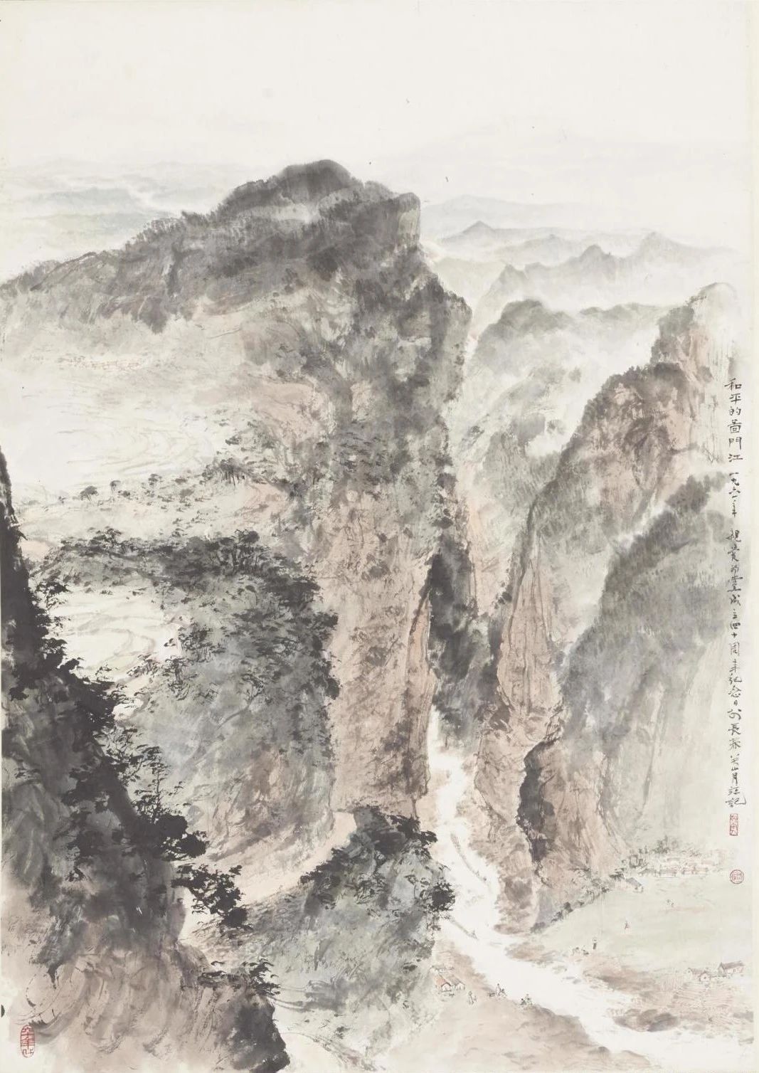 关山月《和平的图门江》