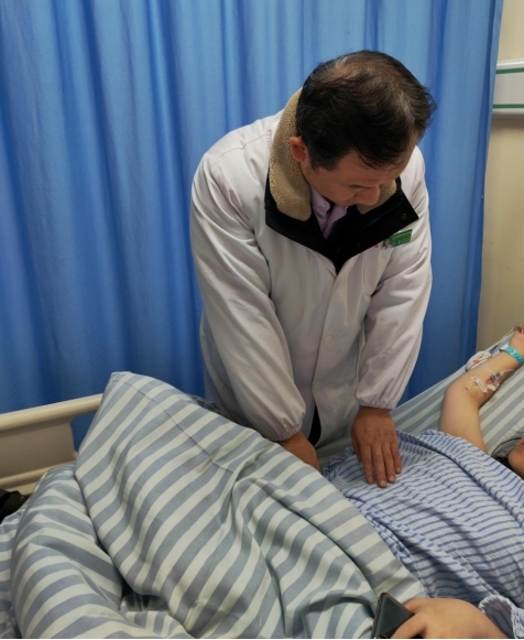 (11月16日,普外科主任、副主任医师李卷查看患儿恢复情况。)