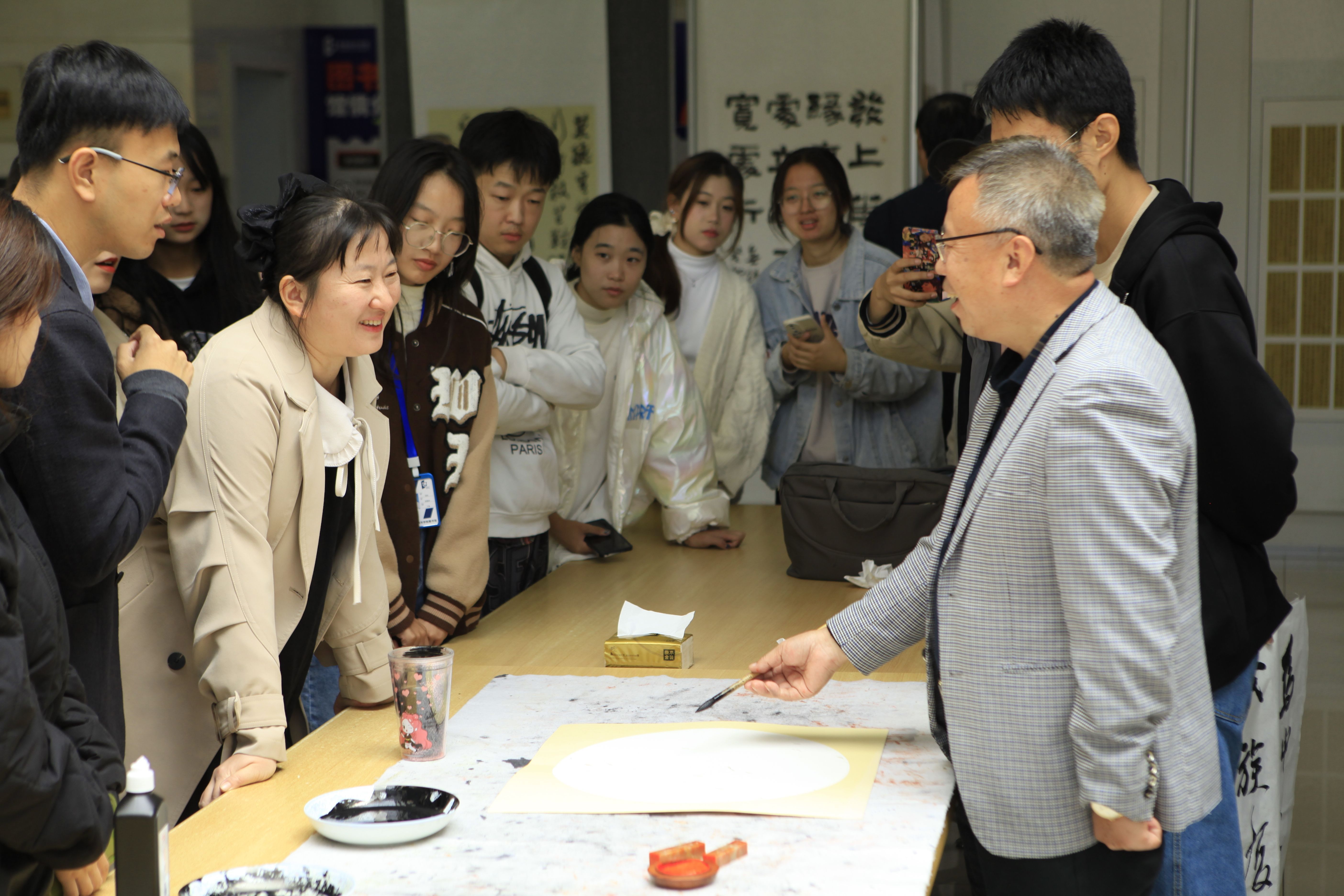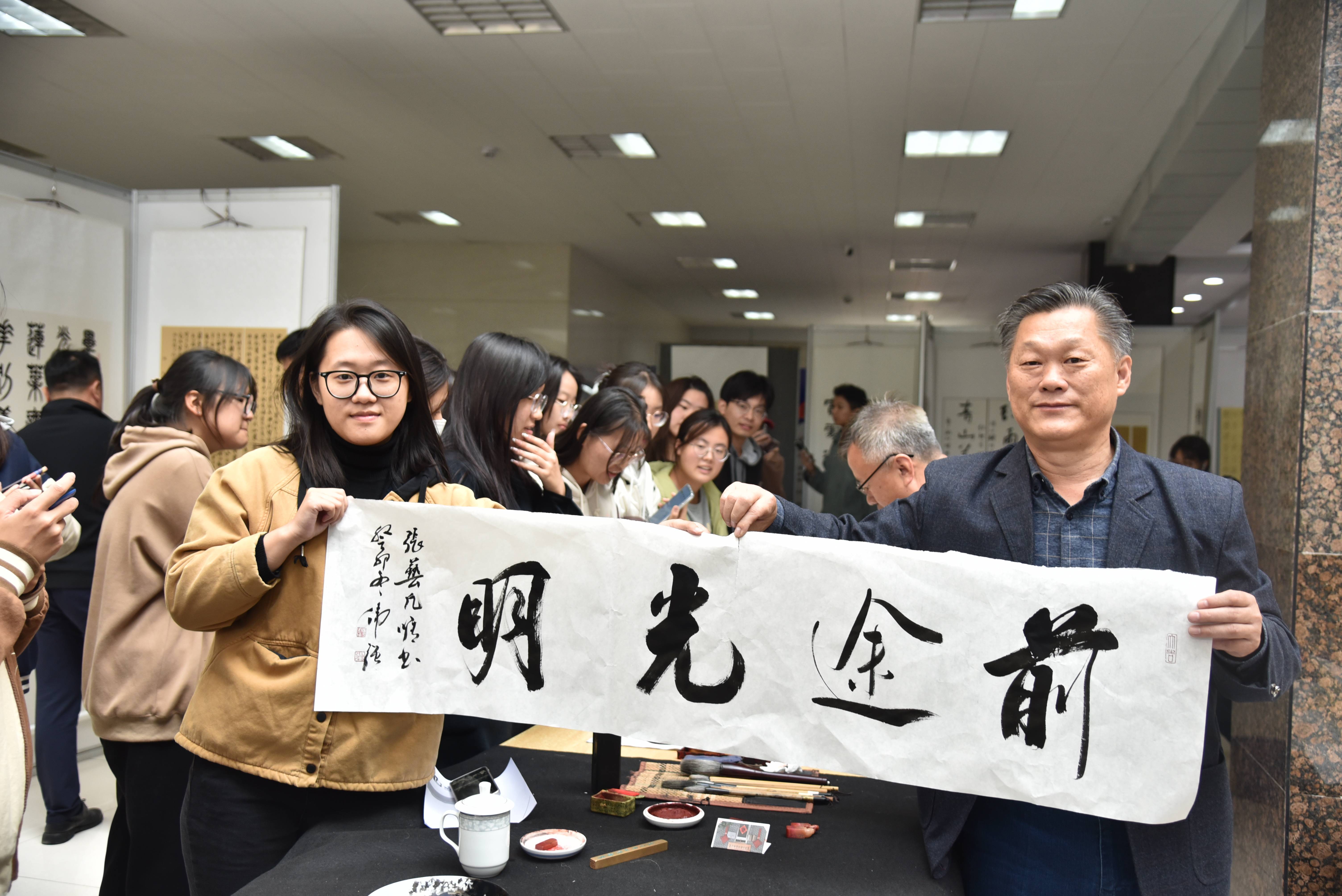展览现场还举办了书画交流笔会,书画名家现场挥毫泼墨,与师生互动,并将现场创作的50余幅书画作品全部赠送给了学校及参加活动的师生。