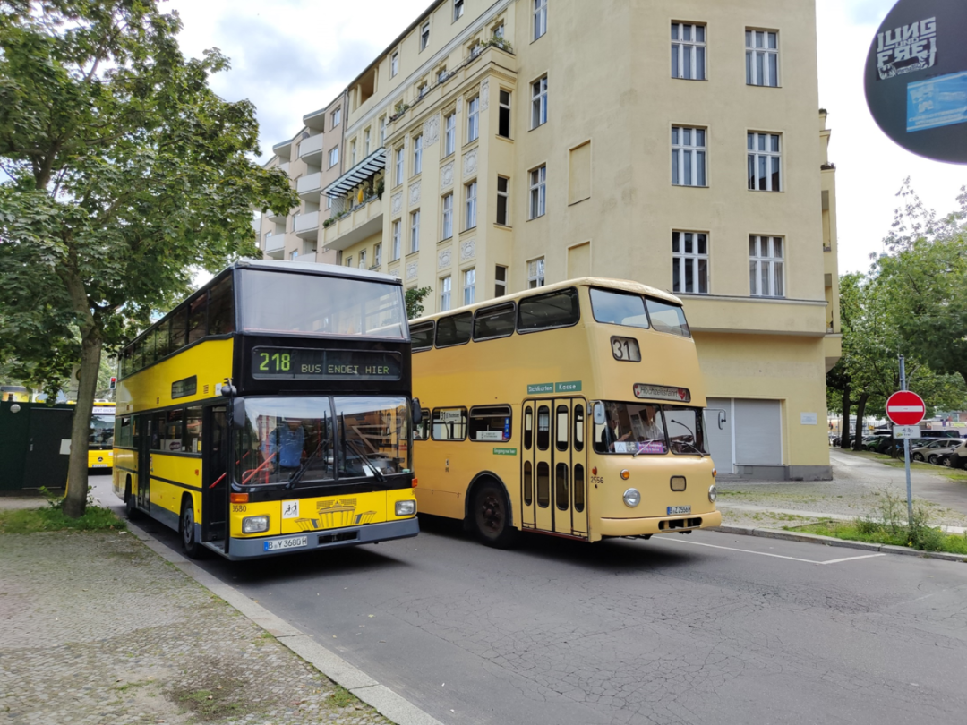 让陈鹏元印象最深刻的是在德国柏林看到的一个画面。8月12日,一对父子开着一辆1974年生产的双层巴士(DE74),特意到218路公交的始发站和当天轮乘出来的1988年生产的双层巴士(D88)合影。218路公交每天都会有部分车次从Traditionalbus Berling公司抽一些古董老车运营,陈鹏元特意捕捉到了这个极具纪念意义的镜头。