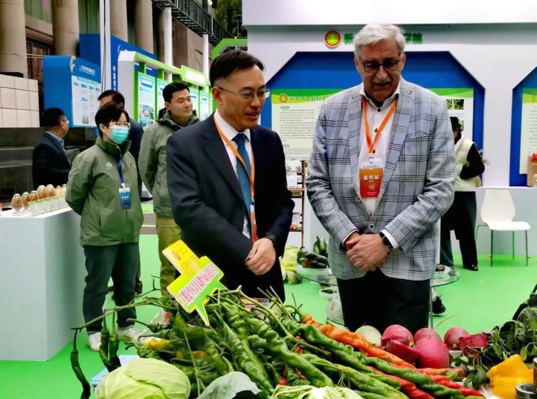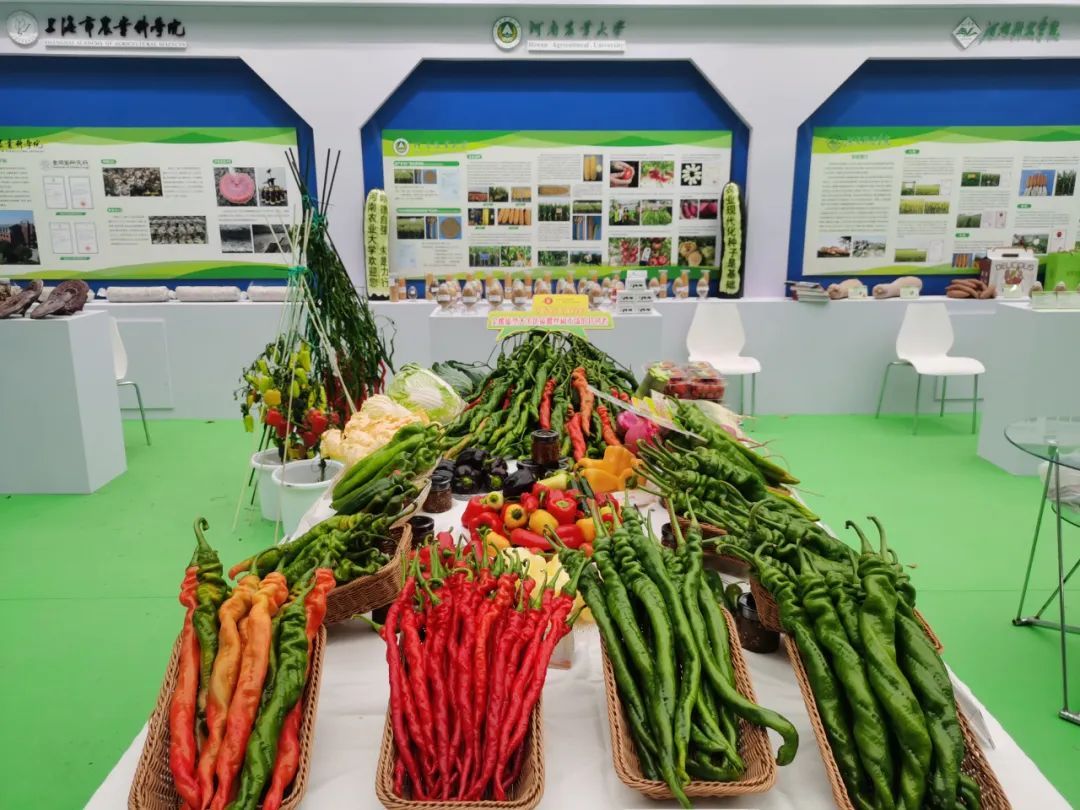 在种业创新引领成果展上,河南农业大学展区布置精美、产品丰富,成为了全会场的亮点、焦点。优质小麦、玉米品种,好评如潮;“神农一号”,集赞无数;高产辣椒,夺人眼球;健康果蔬,受人青睐。自接到参展邀请以来,学校高度重视,由社会服务处牵头,精心组织各学院凝炼科技成果,遴选出小麦、玉米、水稻、花生、种鸡、瓜果蔬菜等优良品种参展。参会宾朋在“细看、细听、细品”中,对河南农业大学坚持建设以农为优势特色的高水平大学的办学定位有更深入了解,对该校履行“强农兴农”使命担当取得的成效高度认可,对学科技创新坚持“顶天立地”的优良传统高度认同。