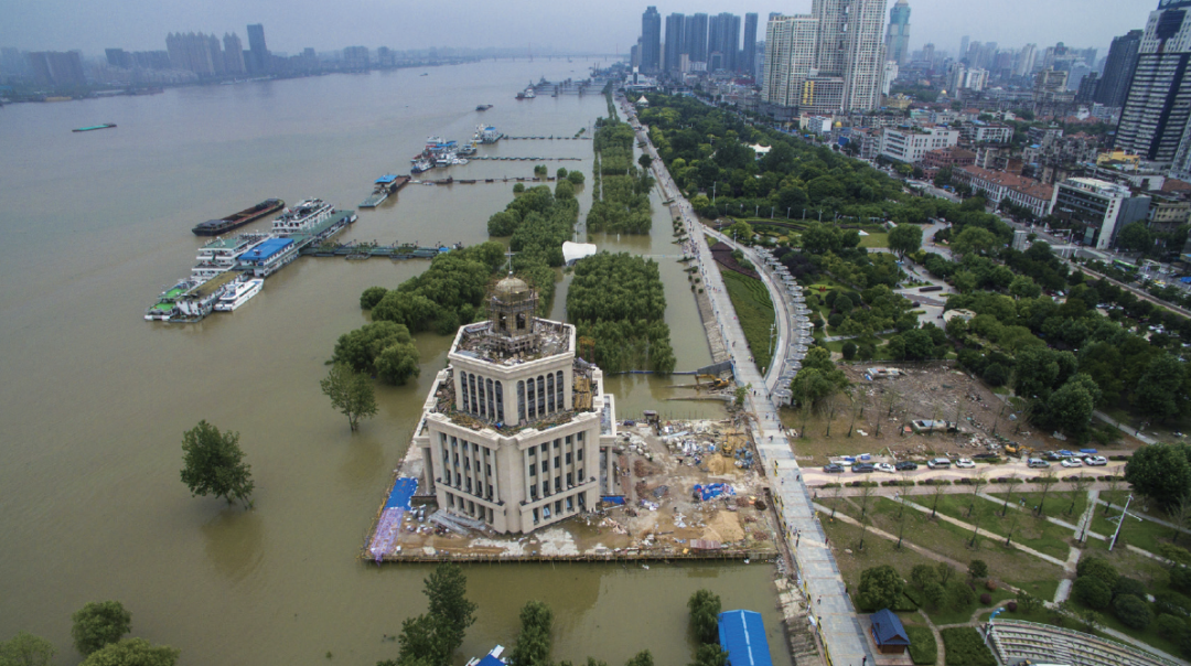 2014-2016 年,赤道中东太平洋发生超强尼尔尼诺事件。2016年7月3日,汉口水位逼近警戒线,上涨的江水淹没了江滩的亲水台