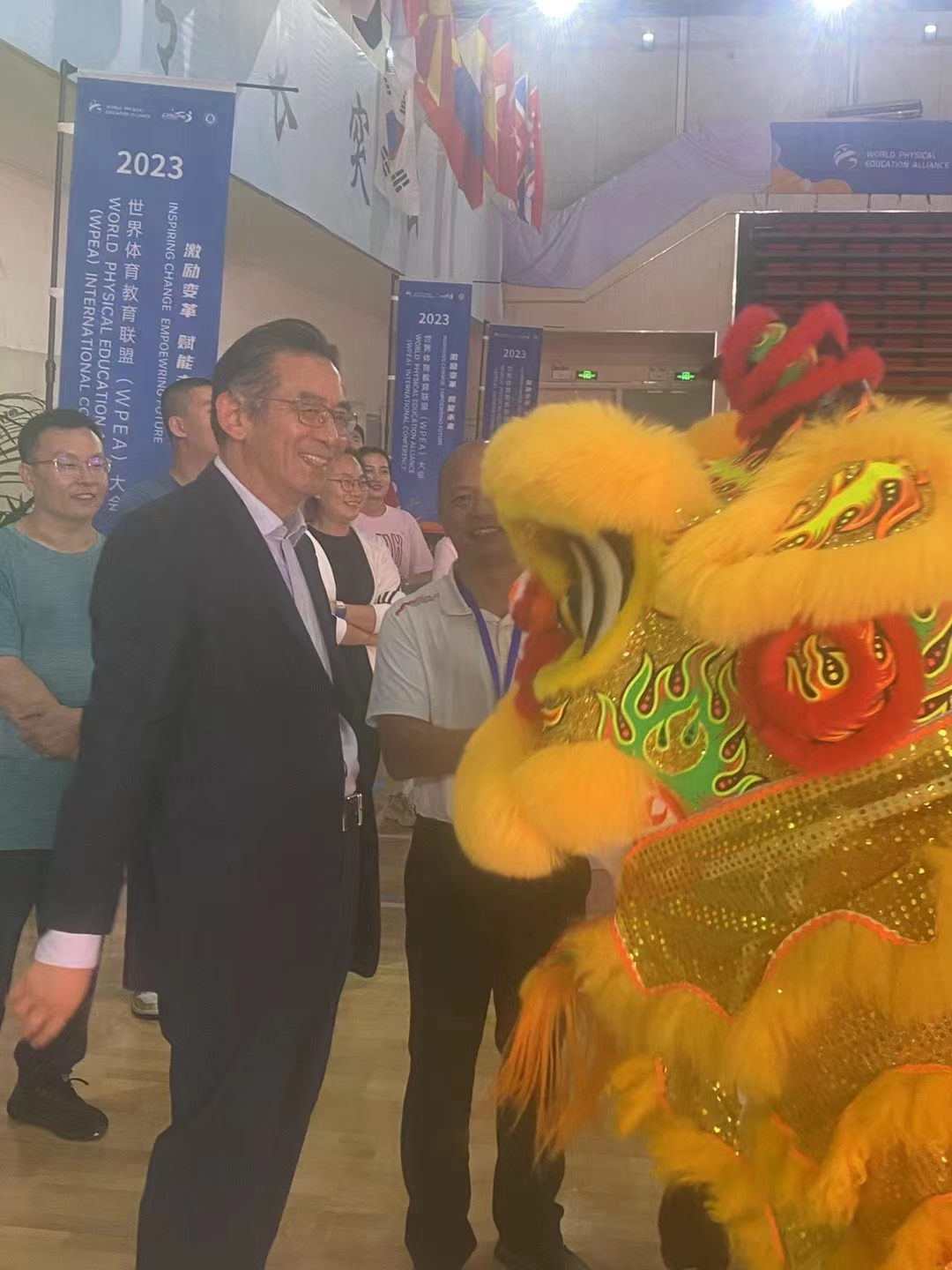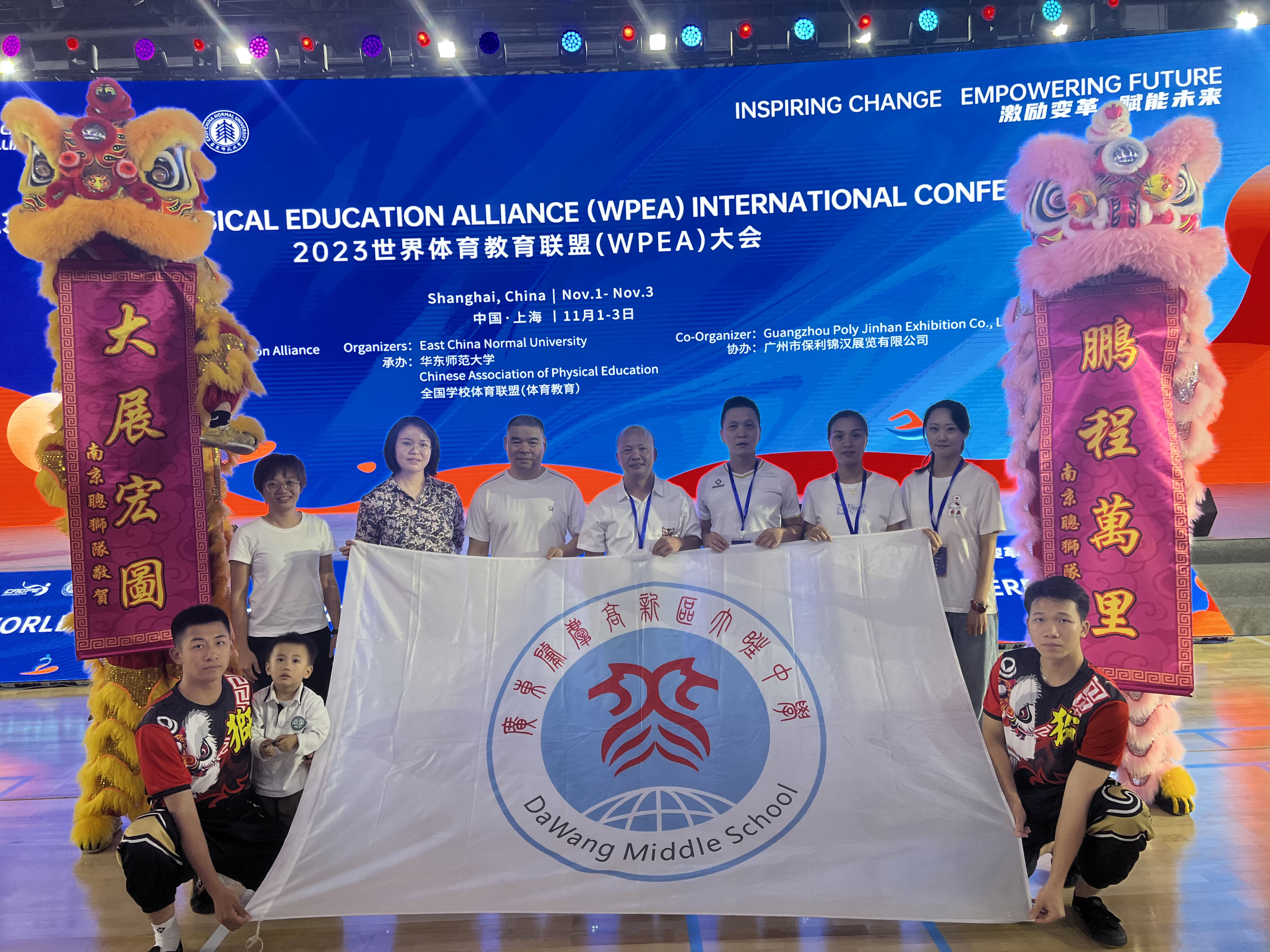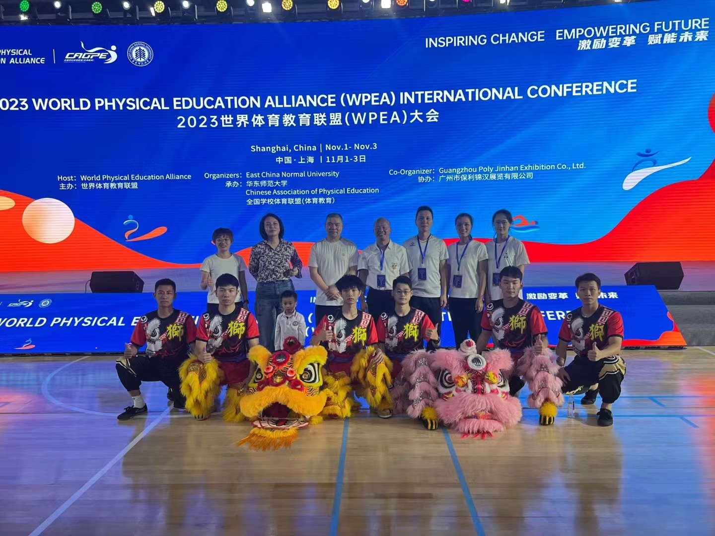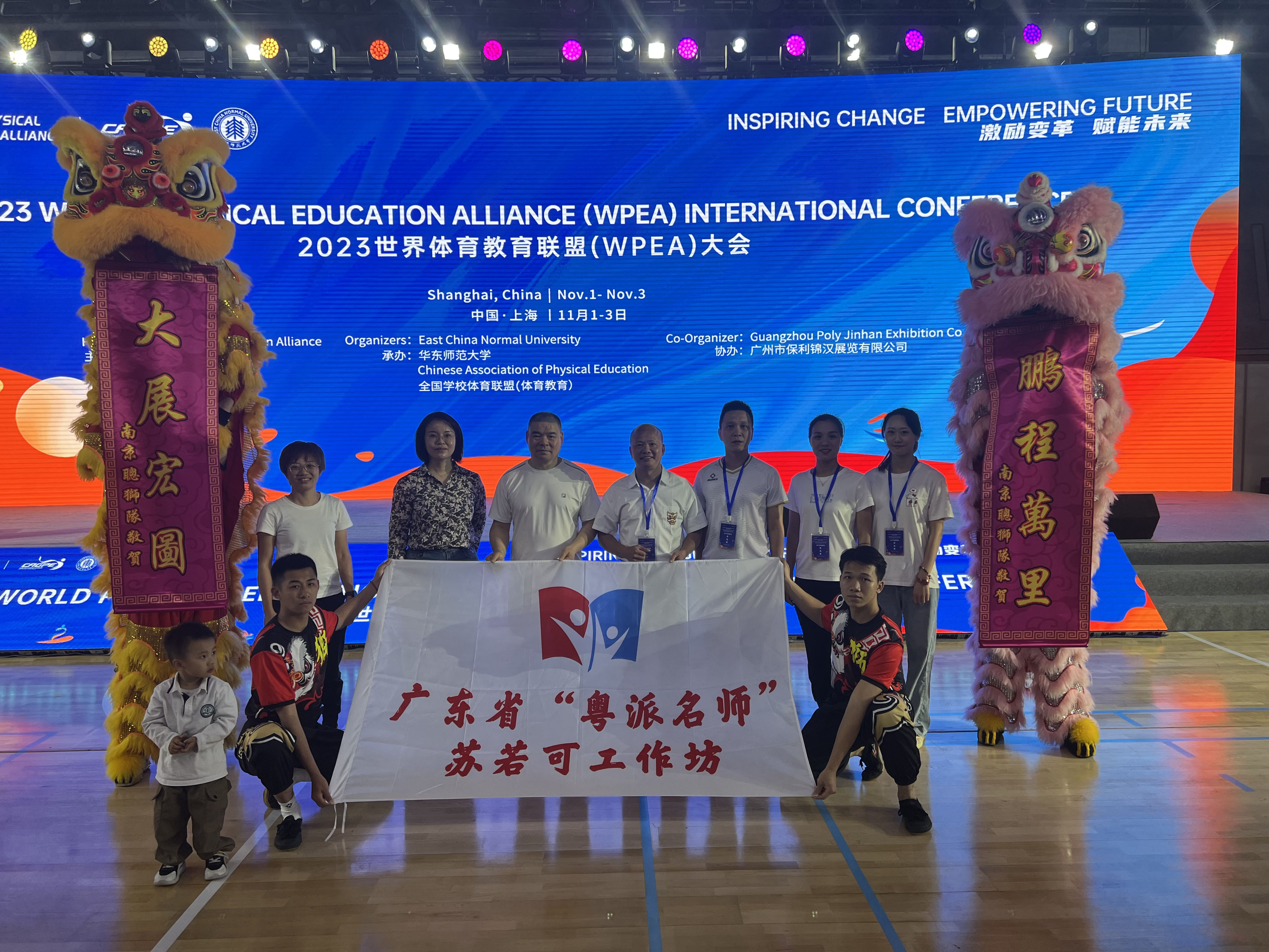 2023年11月1-3日,肇庆高新技术产业开发区大旺中学,广东省“粤派名师”苏若可工作坊部分成员赴上海华东师范大学参加2023世界体育教育联盟大会。11月1日在华东师范大学篮球馆举行了盛大的开幕式活动,大会为期3天,围绕国内外专家讲座、学术研讨、论文科报会、KDL课堂观摩、中华传统体育文化展示等一系列活动。工作坊成员高度重视本次学习机会,进入了沉浸式学习模式,积极认真参与各个环节的学习和实践,听取了国内外体育教育专家的报告,开阔视野,了解体育教育的最新动态。苏若可老师团队在social环节中展示了极具中华传统体育文化特色的醒狮表演,向世界展示了中华优秀传统文化独特的魅力和旺中敢为人先,脚踏实地,灵活变通,和合互信的龙狮精神,并获得了一致好评。