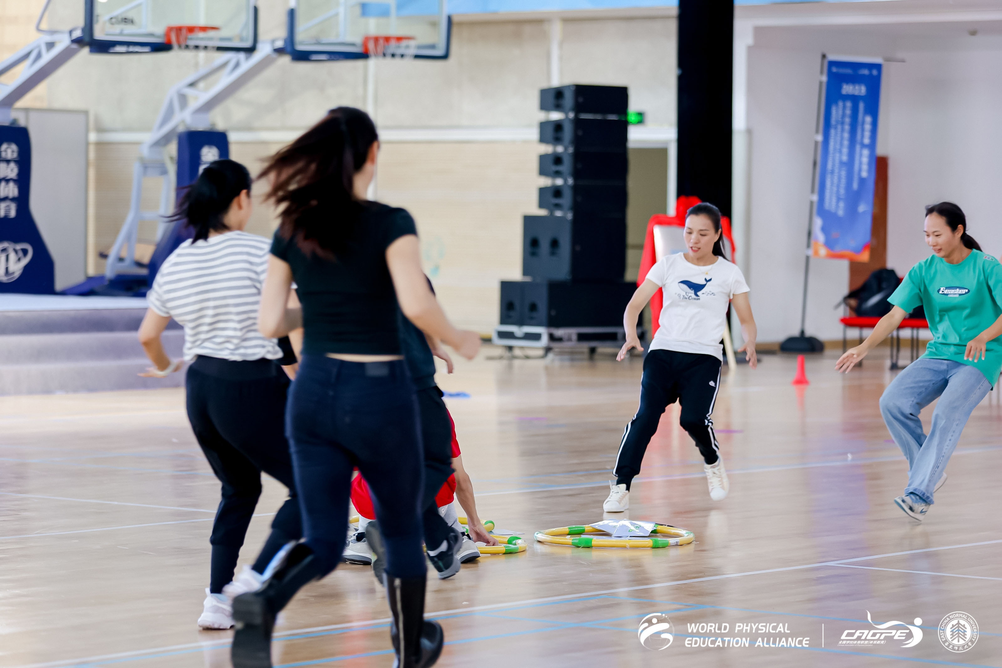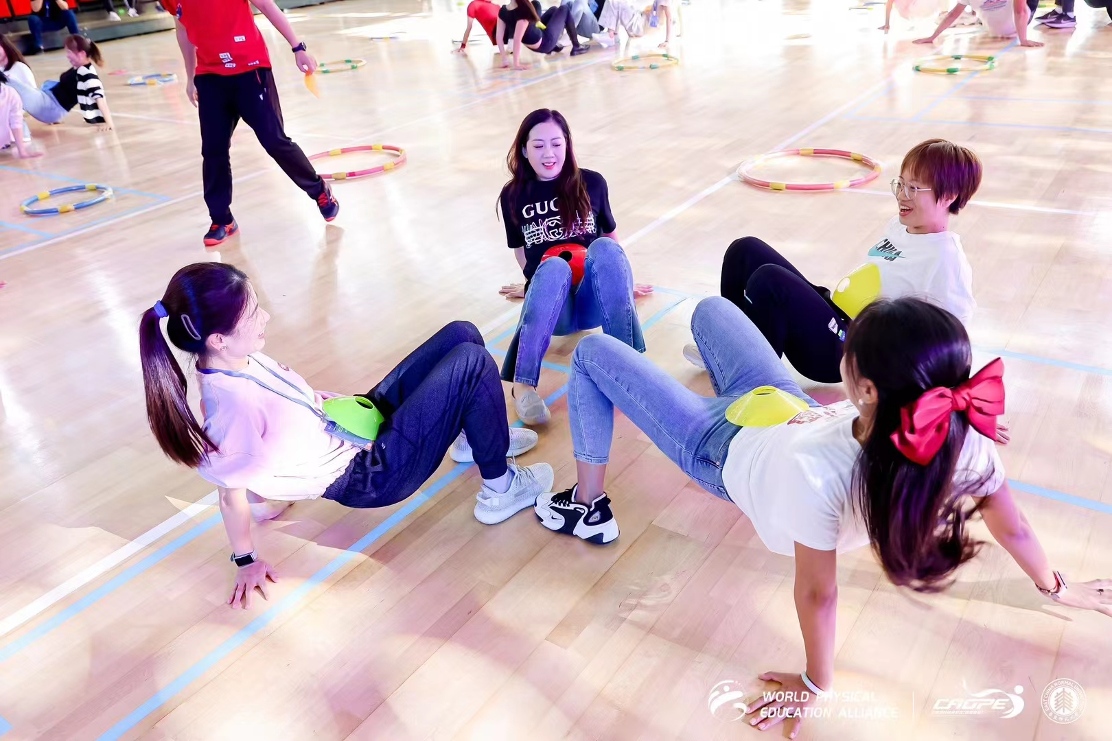 11月3日上午,由汪晓赞教授主持的创新体育教学工作坊:基于课程标准的体育与健康教学实践,有五个环节,分别由五位教师设计了丰富、贴合新课标、接地气的教学课堂,与会专家、教师研究者、一线工作者等作为训练学生,切身体验新课标的教学技巧与感受体能教学的运动量等。苏若可工作坊的老师也积极参与其中。