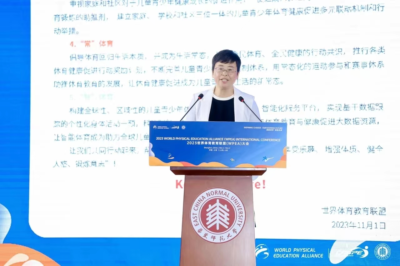 本次大会中,世界体育教育联盟主席、华东师范大学体育与健康学院院长季浏教授以“素养导向下的中国中小学生体育与健康课程改革与发展”为题,结合最新发布的义务教育与普通高中体育与健康课程标准,介绍了新时代我国中小学体育与健康课程的整体构建与发展趋势。