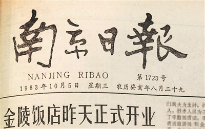 40年前金陵饭店开业时,《南京日报》予以头版报道。图片来源:南京日报