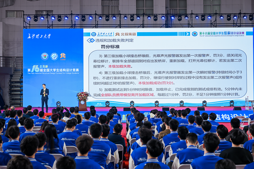 我以学生和领队两种身份参加过结构设计竞赛。之前在武汉大学参加的第十一届全国大学生结构设计竞赛,那一次赛题也考虑了挠度控制设计,检测水流过桥后桥能否顺利把水排出。这次赛题的整体难度较高,不仅对于结构整体的承载能力、位移控制、冲击荷载有要求,对鲁棒性也有一定的要求,对同学们而言是一次很好的训练提升。希望参赛选手都能保持一个良好的比赛心态,取得理想的成绩。