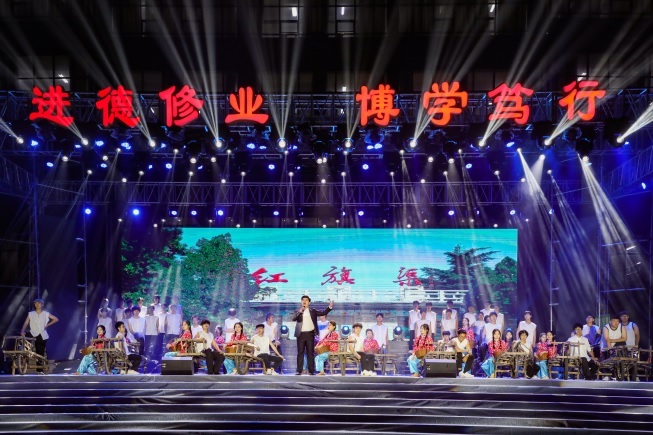 青春礼赞,担当奉献擦亮青春底色。“慷慨悲歌五壮士,忠诚守节铸军魂,情景舞蹈《狼牙山》生动地展现了革命将士身临绝境、纵深一跃的民族大义担当和军人气节贞守。“我的样子就是中国的模样,当炬火,去化作那道光……”华灯璀璨照亮青春身影,清澈音符唱响《有我》的担当,表达青年学子对祖国深沉的爱。