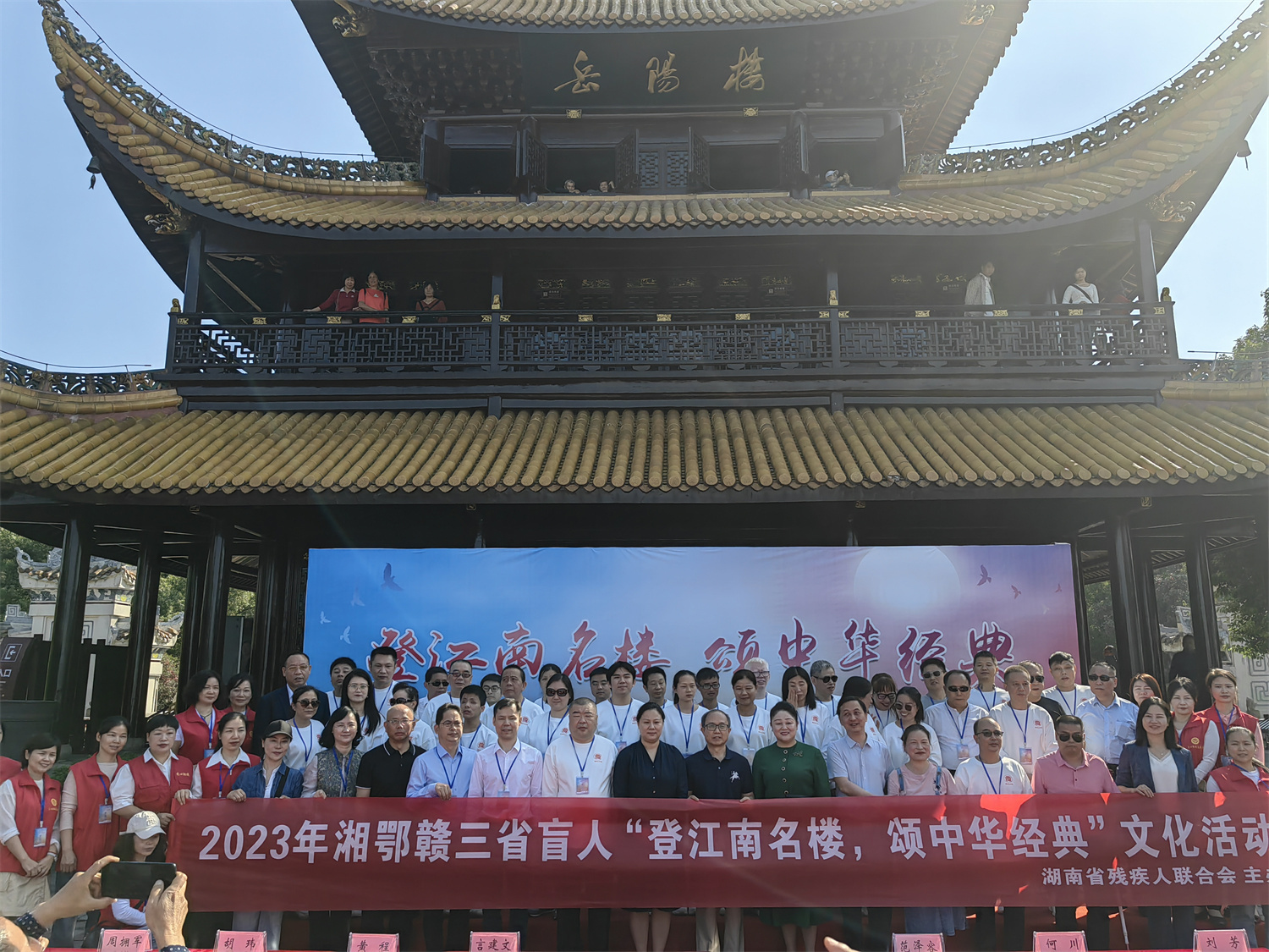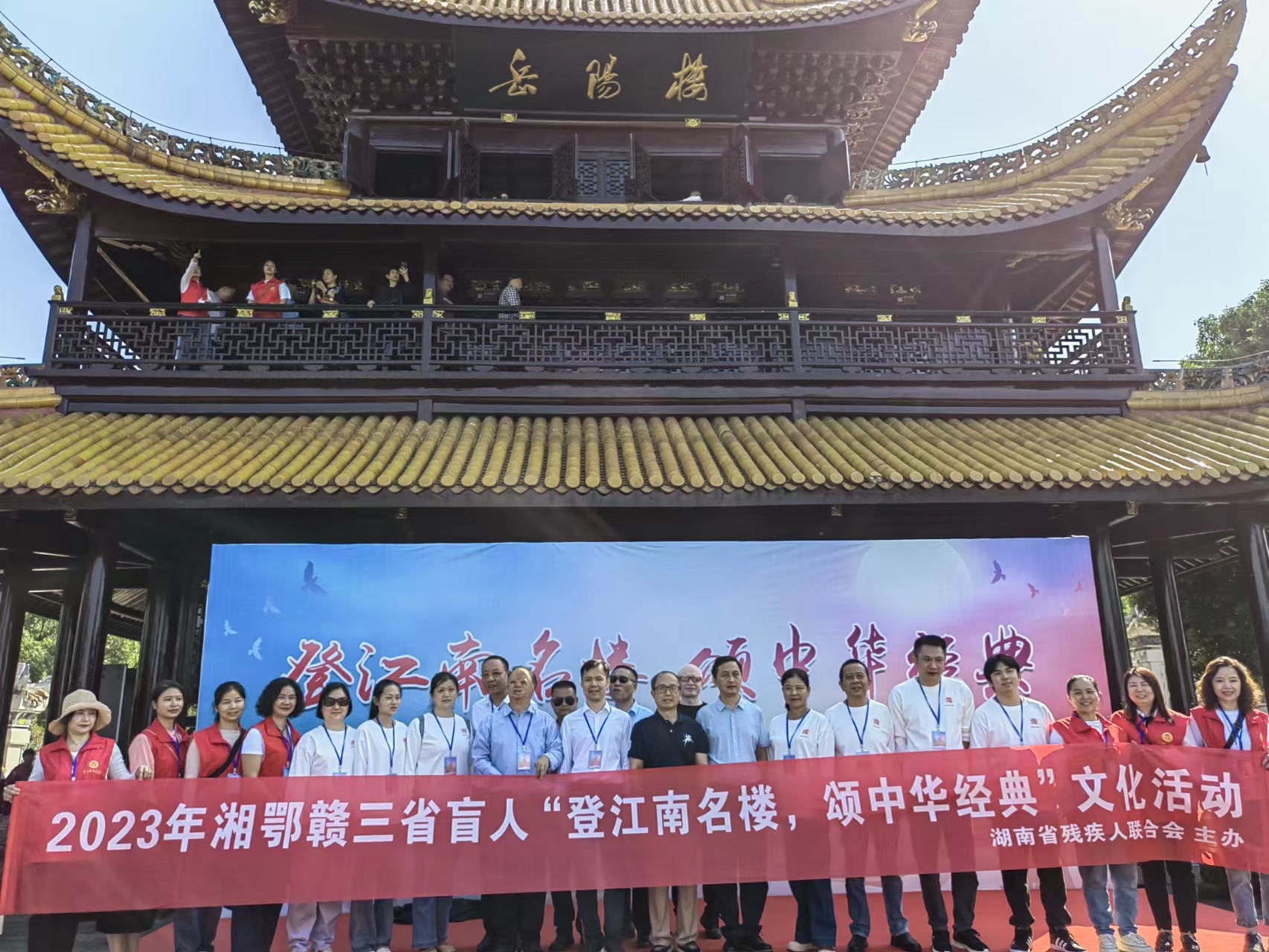 据悉,为大力提升残疾人幸福感、获得感,弘扬中华优秀传统文化,帮助更多盲人朋友感受江南三大名楼深厚的文化底蕴,展示湖南人民扶残助残的良好风尚,由湖南、湖北、江西三省盲人协会共同组织的“登江南名楼,颂中华经典 ”盲人协会主题文化活动,于2018年、2019年分别在江西滕王阁、湖北黄鹤楼成功举办。今年适逢第40届国际盲人节。此次“登江南名楼,颂中华经典”主题文化活动在岳阳举行,不仅进一步弘扬了中华优秀传统文化,帮助大家感受了江南三大名楼深厚的文化底蕴,丰富了盲人们的文化生活,也向社会传递了正能量,展示了盲人朋友们的良好精神风貌。