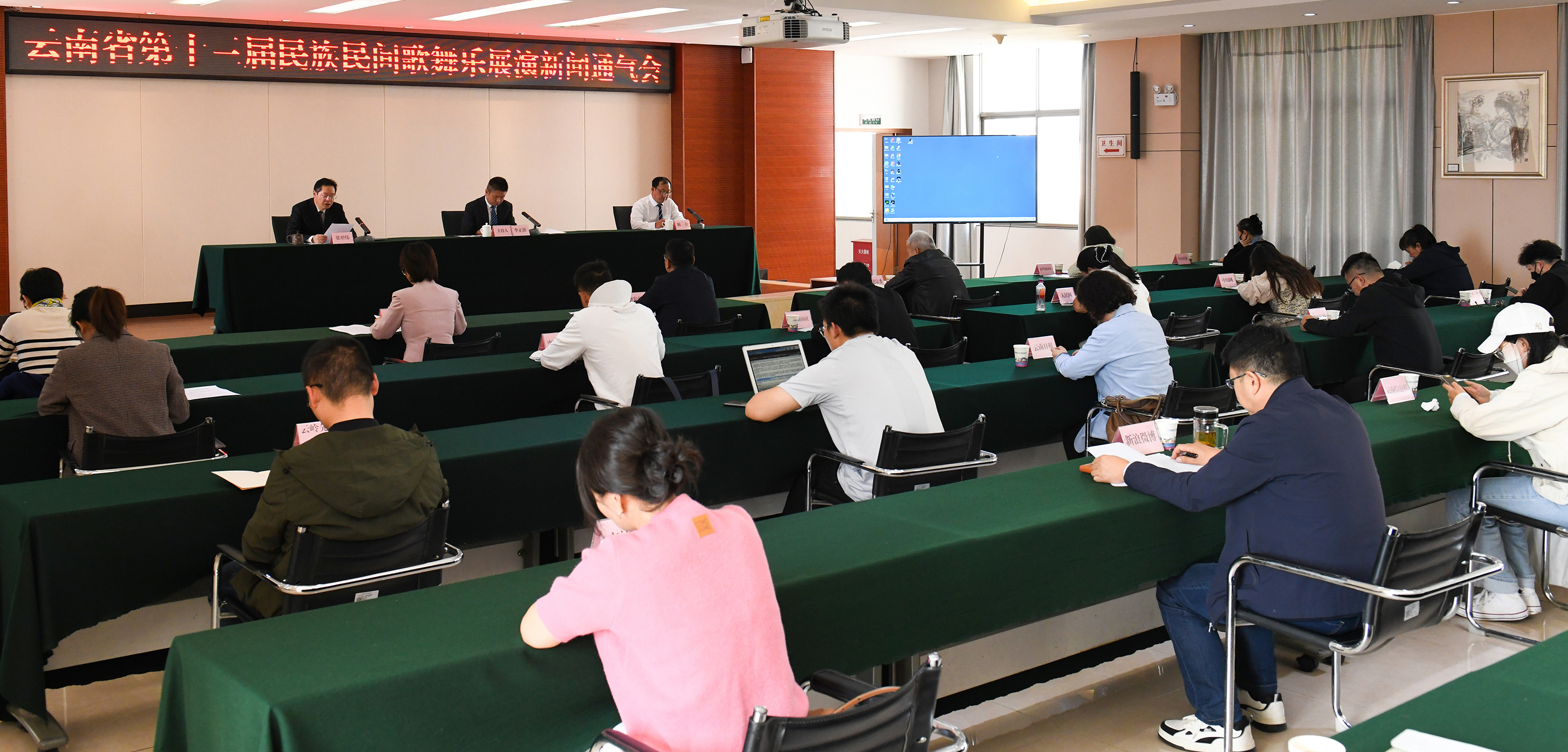 10月16日,云南省第十三届民族民间歌舞乐展演新闻通气会在昆明召开。云南省民族宗教事务委员会党组成员、副主任李正洪主持会议;云南省文化和旅游厅二级巡视员张碧伟通报展演总体情况;德宏州人民政府副州长陈力介绍活动筹备情况。