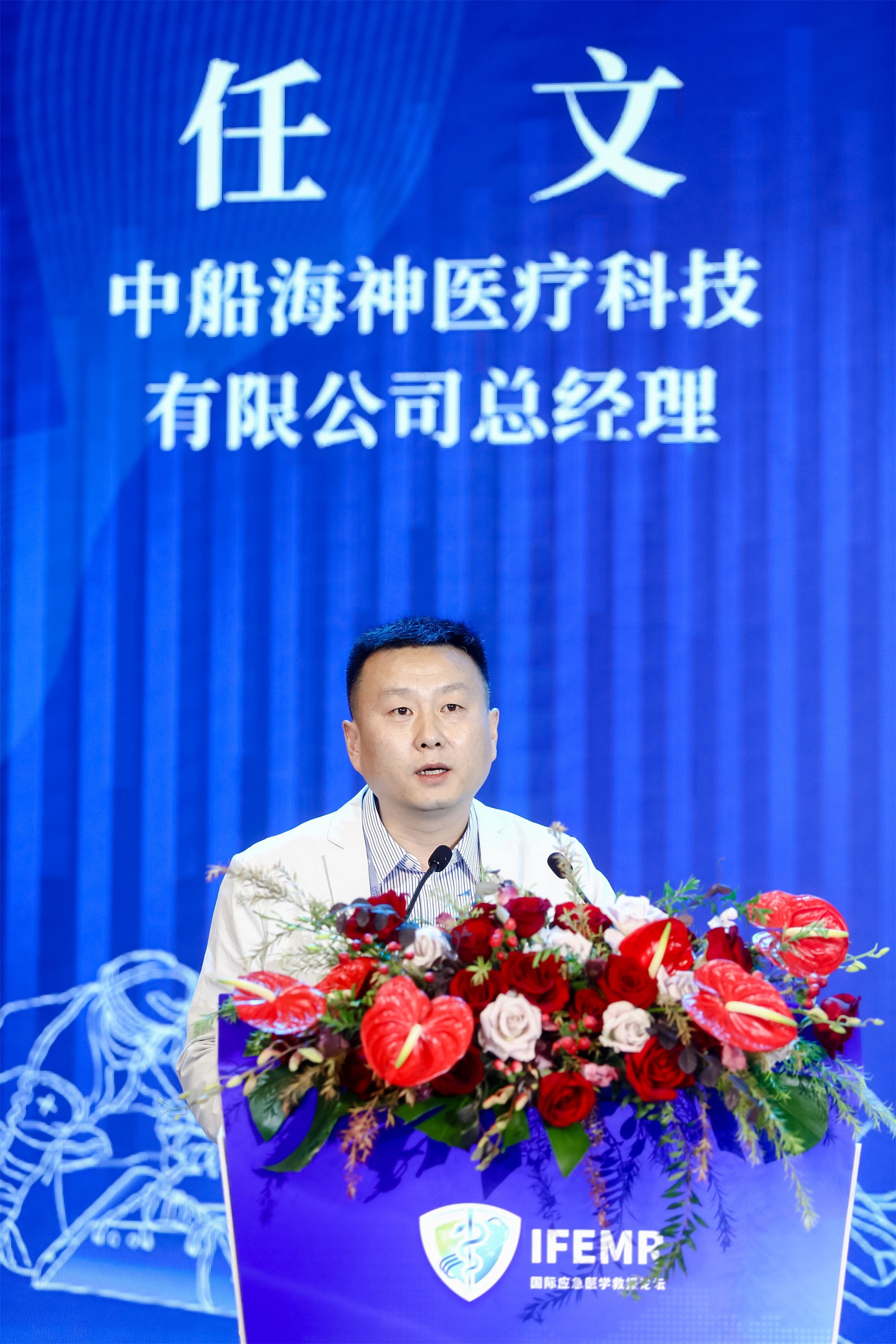 中船海神医疗科技有限公司总经理任文,他的演讲题目是《创建陆海空天潜隧“六维一体”的国家“应急应战”医学救援装备保障模式》。他介绍了中船海神的陆海空天潜隧“六维一体”的国家“应急应战”医学救援装备保障模式,以及应急体系提升的战略性意义。