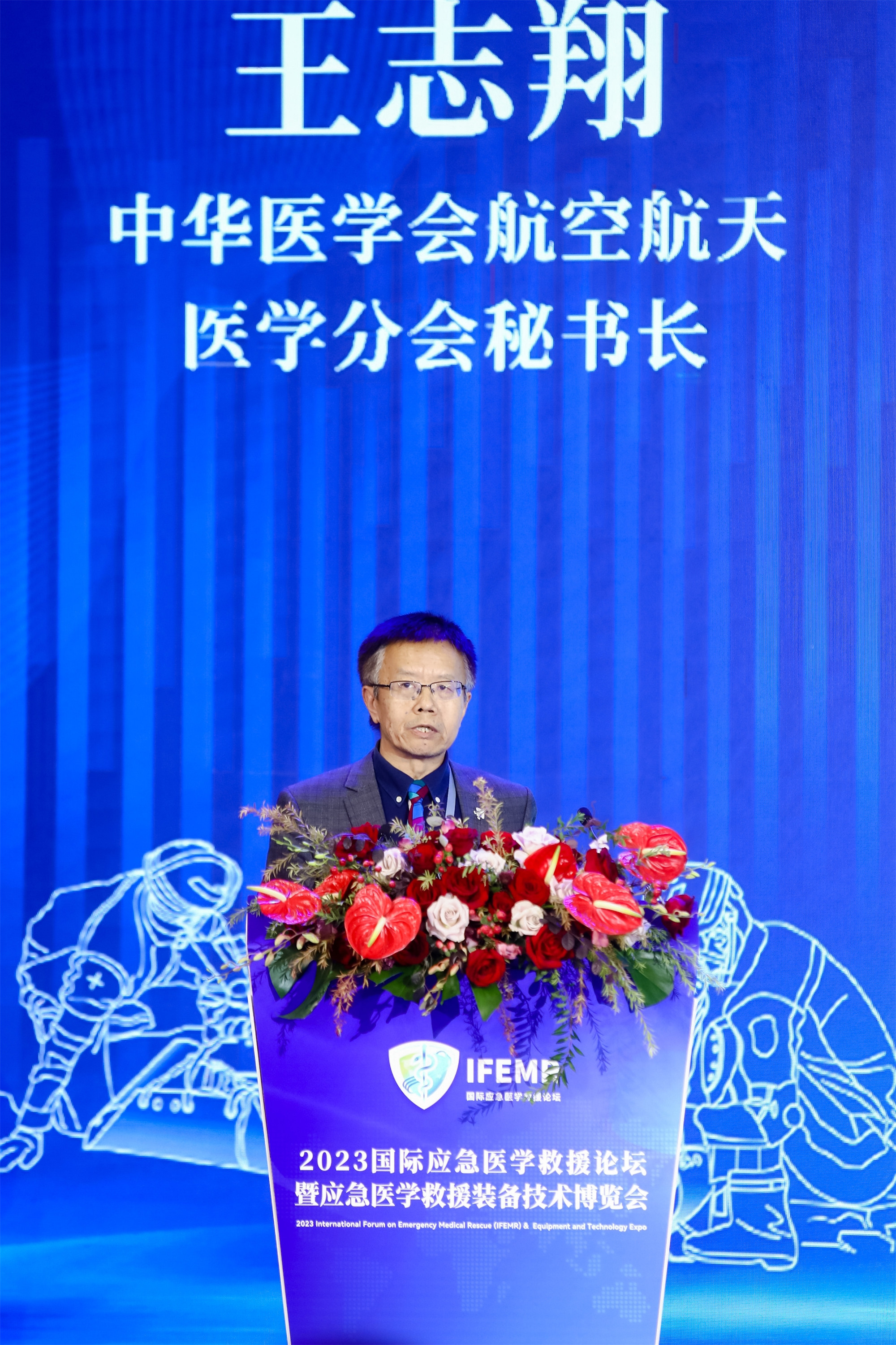 中国医学会航空航天医学分会秘书长王志翔,他的演讲题目是《航空应急医学装备研发新进展》。他让大家充分认识到利用航空医疗转运的救援方法可以使救援体系更加完善,将来的航天救援发展方向也是挑战和机遇并存,前景良好。