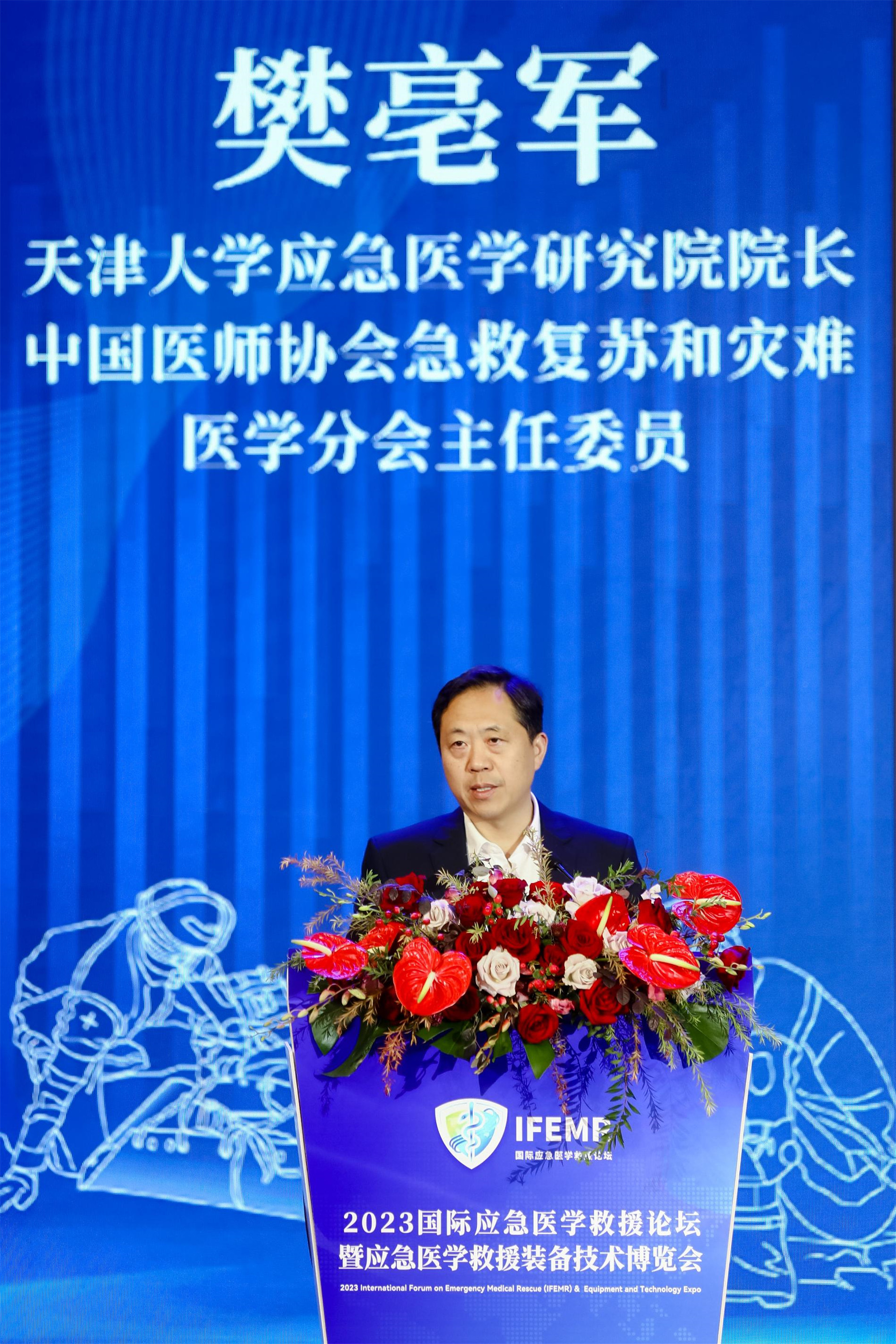 天津大学应急医学研究院院长樊毫军,他的演讲题目是《医工结合推动急救救援能力新提升》。他生动讲述了天津大学的应急救援团队日趋强大,救援能力也逐渐增强,尤其是专业的生命支持技能和猝死急救项目,让大家感受到了目前医工结合提升救援能力的多元化发展。