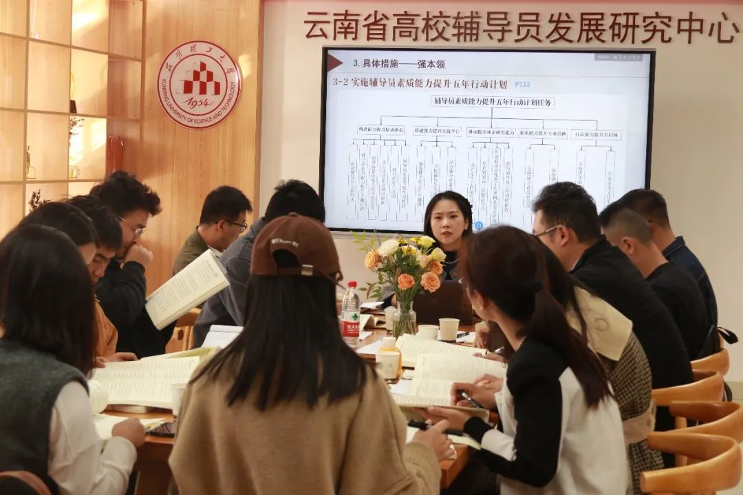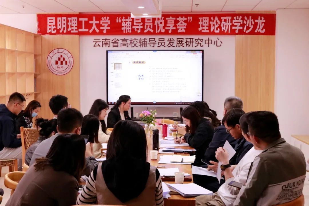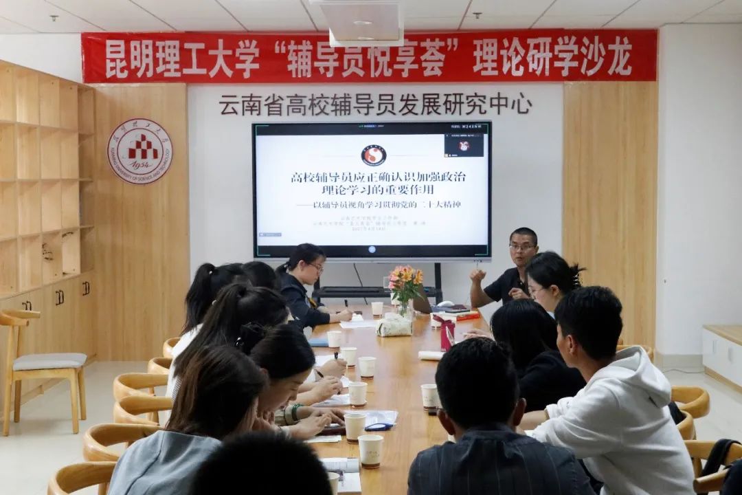 为切实提升辅导员队伍理论知识水平,由云南省辅导员名师工作室(张瑶工作室)牵头,创办了“辅导员悦享荟”理论研学沙龙活动。活动由一位主讲人负责领学,参与人员共同研讨的形式进行。活动创办至今分别以“高校辅导员如何加强政治理论学习”“思想政治教育工作核心文件研学”为主题举办了两期理论研学沙龙,参与人数60余人。
