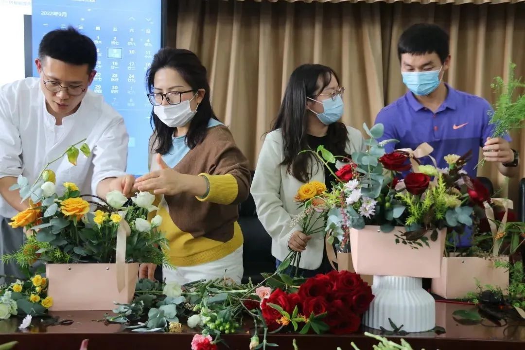 在教师节前夕举办“春雨花映中秋月”花艺学习与体验活动。通过花艺师讲授,让辅导员们学习到插花的有关知识和花艺文化,在插花的过程中也释放了压力、放松了身心,增进了彼此了解,增强了学生工作队伍的凝聚力。