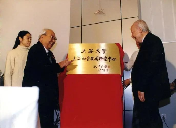 1999年11月10日,钱伟长老校长与时任上海大学上海社会发展研究中心主任费孝通共同为中心揭牌