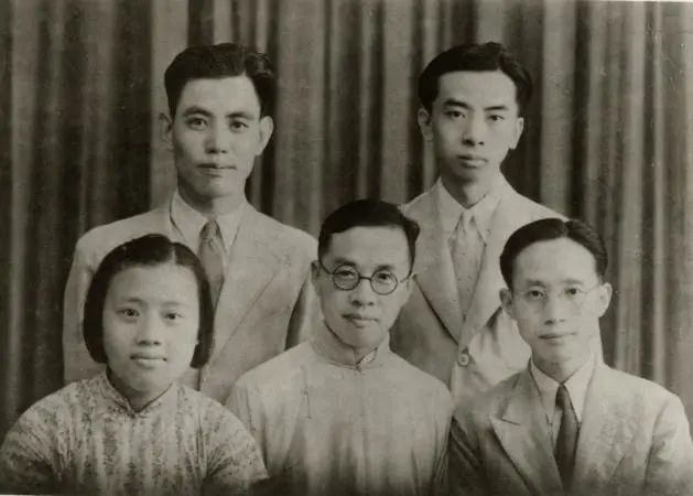 1940年夏,钱伟长赴加拿大留学前于上海合影 下排右1:钱伟长 中:钱穆