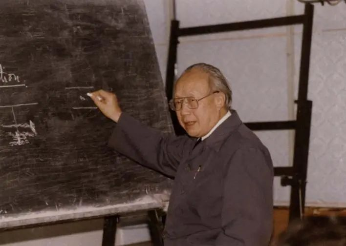 钱伟长老校长在讲台上
