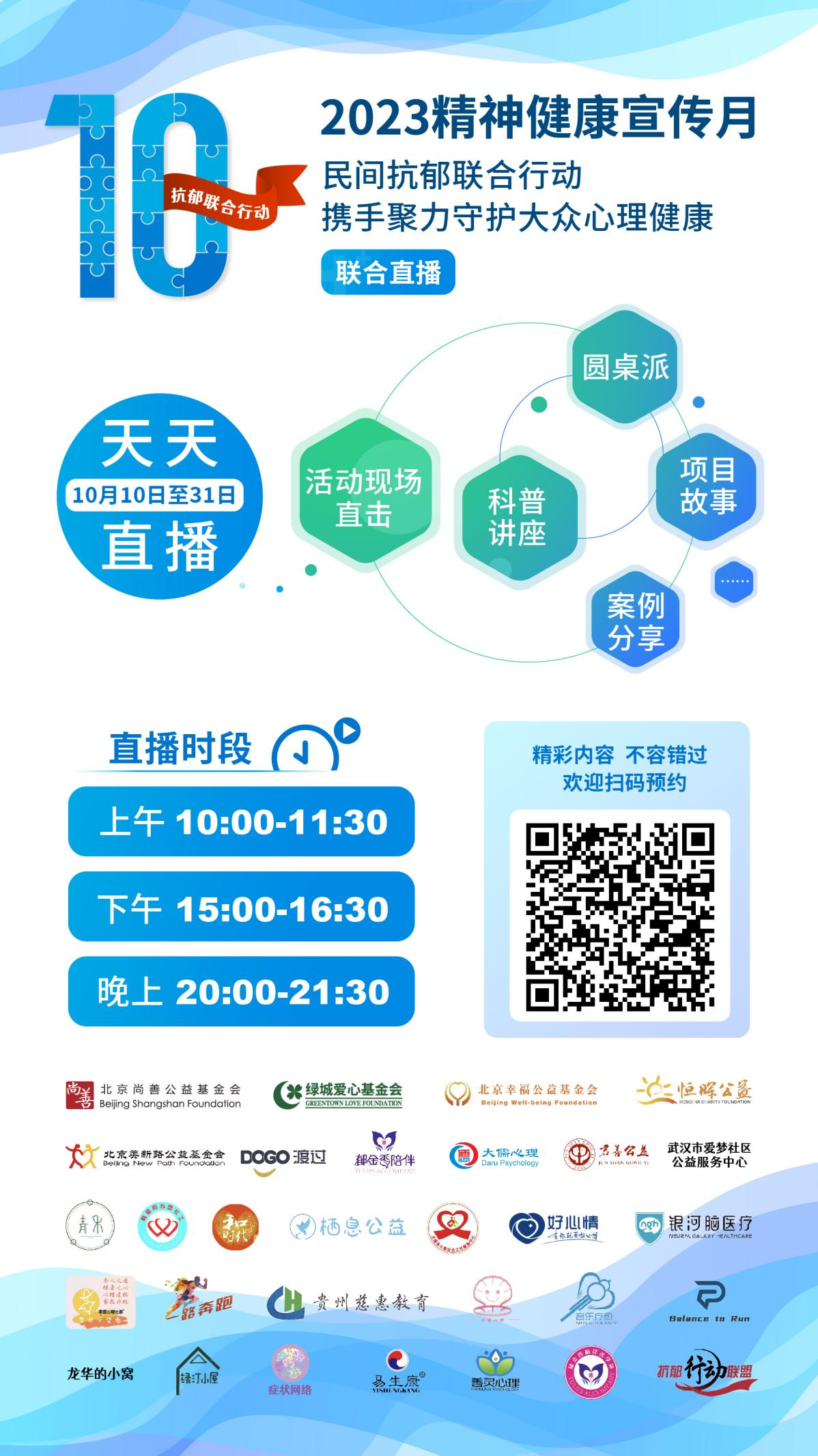 每年10月10日是“世界精神卫生日”,今年精神卫生日的主题是“促进儿童心理健康 共同守护美好未来”。为促进抑郁症防治,倡导大众关爱精神健康,北京尚善公益基金会联合民间抗郁组织在10月举办“第四届精神健康宣传月”活动。