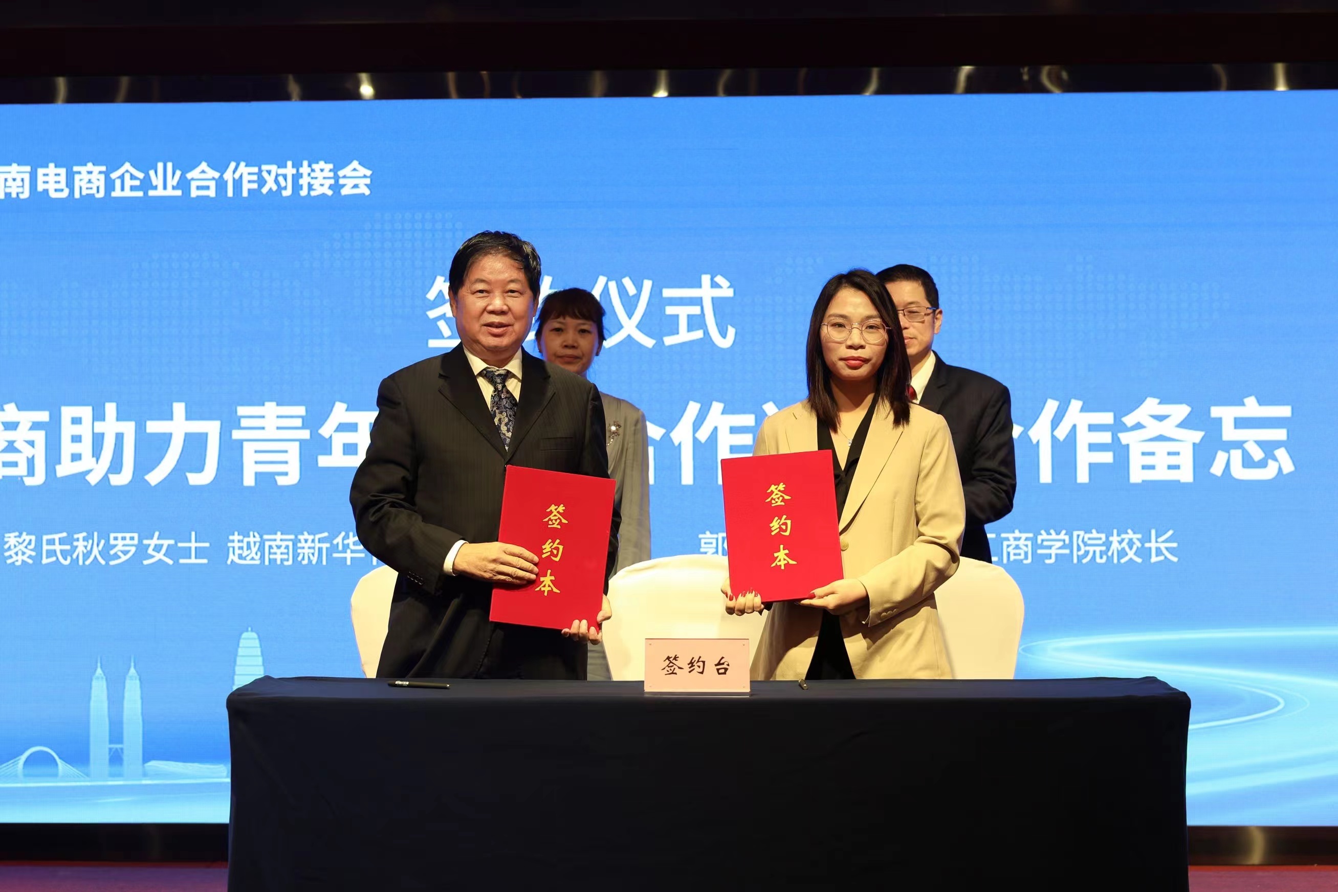 对接会现场,我校与越南新华青创中心签署双边合作备忘录——电商助力青年创业合作备忘。