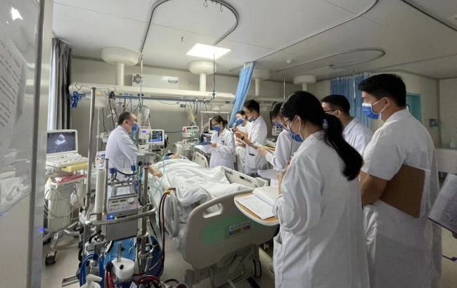 南华大学附属南华医院接手患者时,患者意识已完全丧失,经过多方抢救,患者恢复自主心律。后紧急送往南华大学附属南华医院重症医学科,副院长刘龙飞作出统筹指示,迅速组织重症医学科、心内科、介入科、急诊科等多学科专家团队讨论。