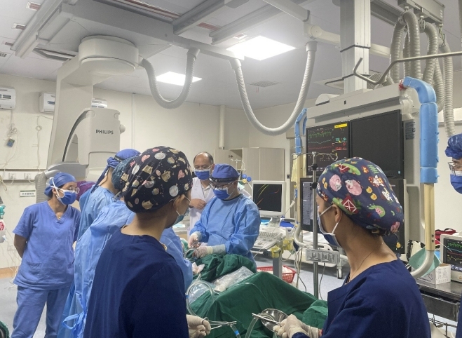 心内科和介入血管外科紧急为患者实施冠脉造影和肺动脉造影,急危重症医学部主任廖谷清、副主任贺承健带领团队为患者实施ECMO治疗。