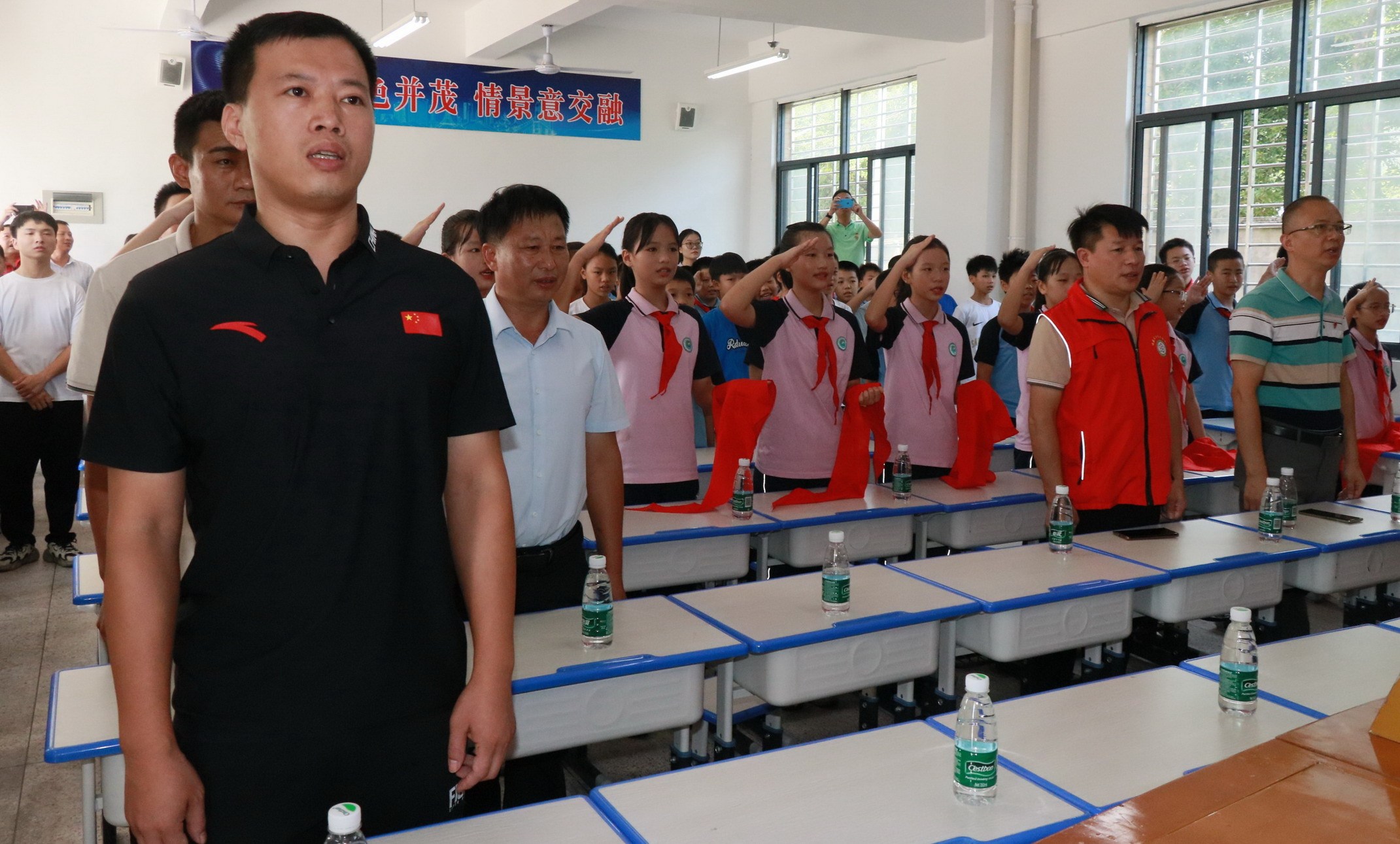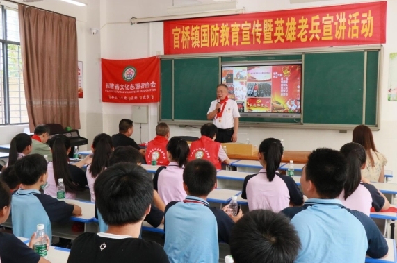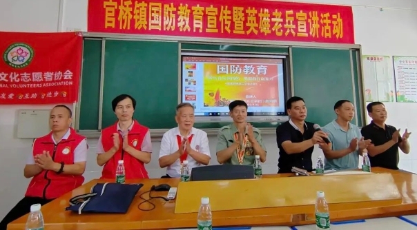为进一步普及国防知识,培养学生爱国拥军的家国情怀,推动国防教育走深走实,在全社会营造关心国防、热爱国防、建设国防、保卫国防的浓厚氛围。在福建省文化志愿者协会乡村振兴专委会的牵线搭桥下,2023年9月26日,由退伍老兵组成的爱国主义和国防教育宣讲团走进福建安溪县官桥镇第二中心小学进行国防教育宣传暨英雄老兵宣讲活动。本次活动由中共安溪县官桥镇委员会、安溪县官桥镇人民政府、福建省文化志愿者协会主办,中共福建省文化志愿者协会支部委员会、中共安溪县官桥镇驷岭村支部委员会、福建省文化志愿者协会乡村振兴专委会、官桥镇第二中心小学承办。参加活动的有:官桥镇政府刘木法、梁小素,福建省文化志愿者协会刘宗利以及乡村振兴专委会林元章、李大志、高秋虹、陈华、林恩平、陈淼鑫,驷岭村林万椿、林俊德,官桥镇第二中心小学林秋生校长和全校师生共700多人。