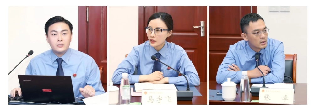 市检察院孙赞在线演示社会治理检察建议案件线索管理平台;鼓楼区检察院马宇飞、铜山区检察院张卓作为干警代表分别分享参与研究基地运行的体验和思考