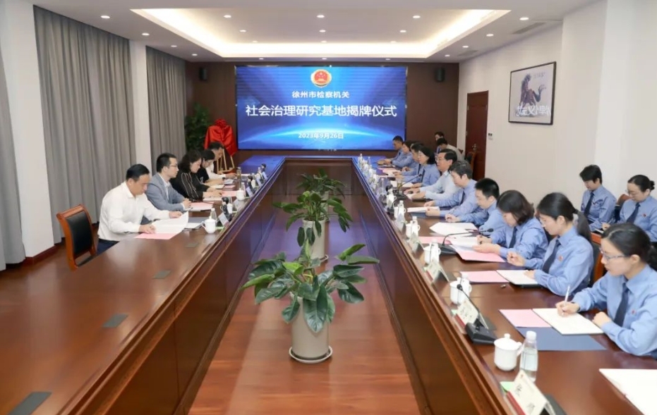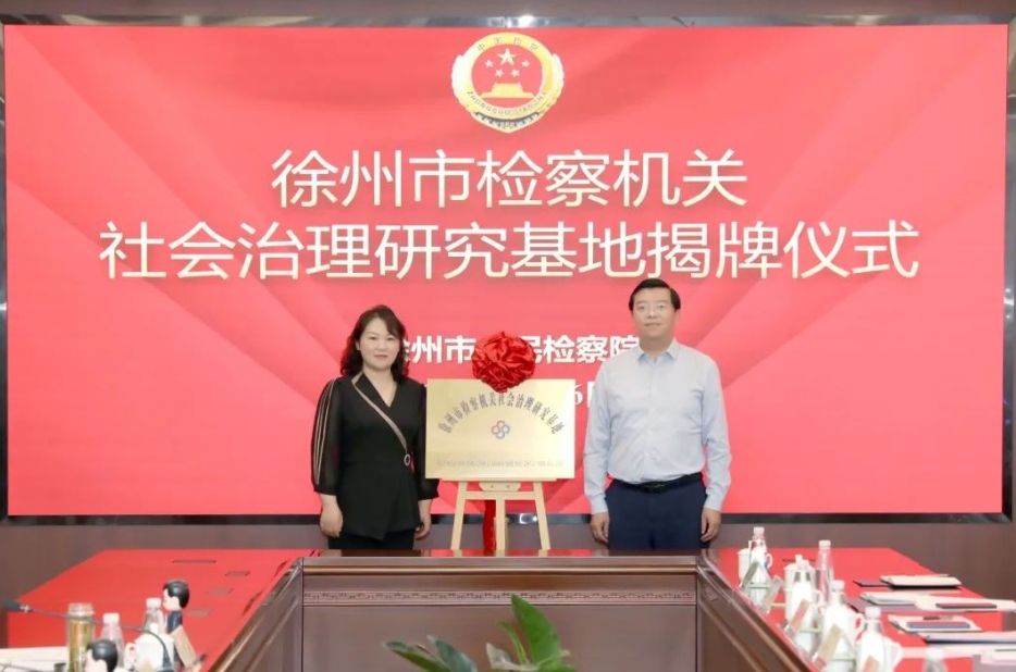 为充分发挥检察机关法律监督职能作用,推进社会治理体系和治理能力现代化,近日,徐州市人民检察院举行徐州市检察机关社会治理研究基地揭牌仪式。最高检法律政策研究室民行处处长、二级高级检察官华锰,江苏省检察院法律政策研究室副主任杨大为,徐州市检察院党组书记、检察长王旭奇,市司法局党组书记、局长艾新平,江苏师范大学法学院院长、教授菅从进等出席活动。