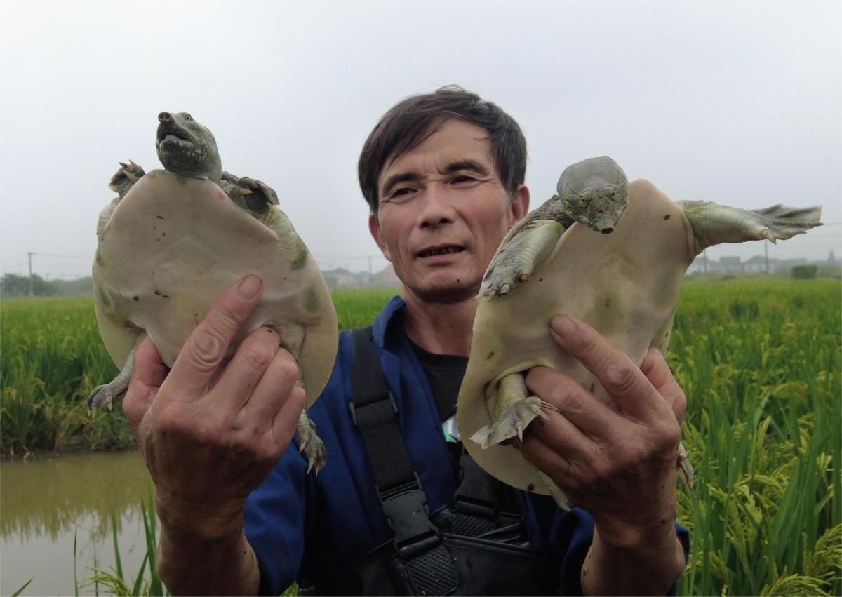 徐卫尧是专业养鳖的,池塘禁养后,宁波推广稻渔种养模式,他就向村里租了40亩田,把鳖养到了稻田里。