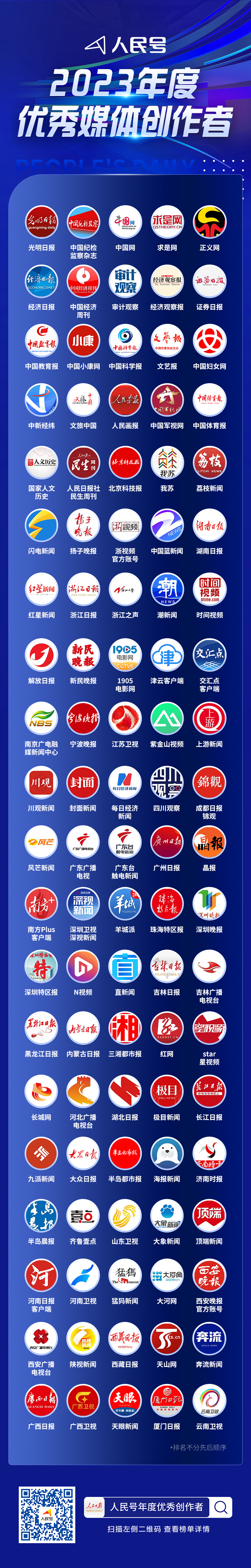据悉,优秀创作者名单是根据文章质量、文章数量、影响力指数等多个维度综合评定得出。优秀创作者涵盖政务、媒体、自媒体、公安、消防、高校领域,涉及科普、美食、文化、艺术等垂类。截至2023年年底,人民号平台入驻号主超3.3万个,内容总量超过2725万篇,总阅读量超2500亿。