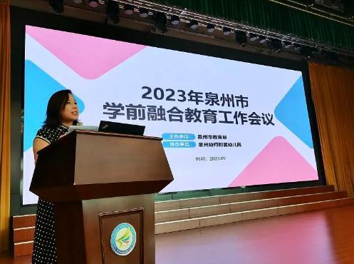 接下来,泉州市温陵实验幼儿园、泉州市培蕾实验幼儿园、泉州市丰泽幼儿园、泉州台商投资区第七幼儿园、石狮市灵秀镇第二中心幼儿园、泉州幼儿师范学校附属幼儿园等部分省示范园、融合教育试点园代表,一一分享了在学前融合教育的宝贵经验和典型案例。六位代表从关注融合教育,推动儿童共同发展等方面,展示了泉州学前融合教育的工作成果和创新做法。
