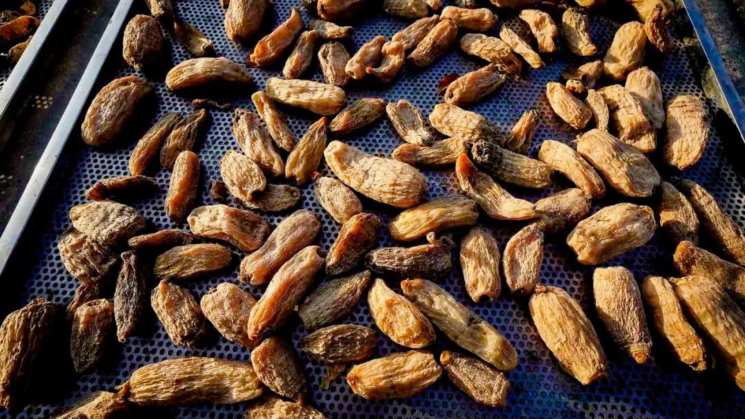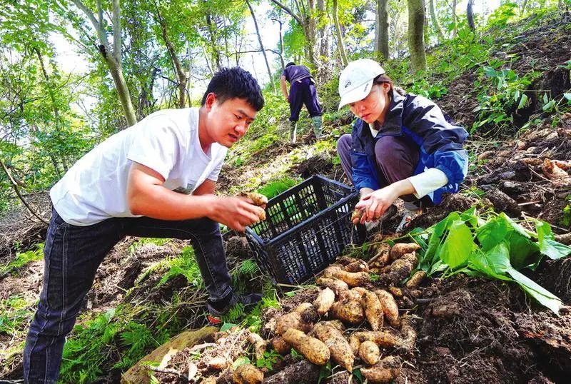 大洪山林地土质疏松深厚,气候温和湿润,具有得天独厚的天麻生长自然环境。“我们去年开始试种天麻10多亩,今年种植面积达到1000亩。”神农蜜菌公司总经理徐阳晓介绍,天麻在林下生态种植,不与农田争地,不惧山高林密,实现环境保护和产业发展双赢,是“两山”理论的生动实践。 在天麻基地高耸的树林下,一条条标准化的天麻种植垄整齐排列,徐阳晓熟练地扒开松软的土壤,把一个个已经成熟的天麻从地里刨出来。他说,天麻无根无叶,不能进行光合作用,只能通过共生寄生关系从蜜环菌吸收营养,进行生长发育。“别看它很不起眼,平均每亩纯利润可达3万元以上。”
