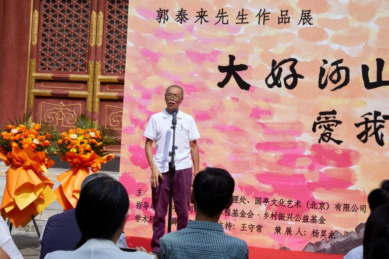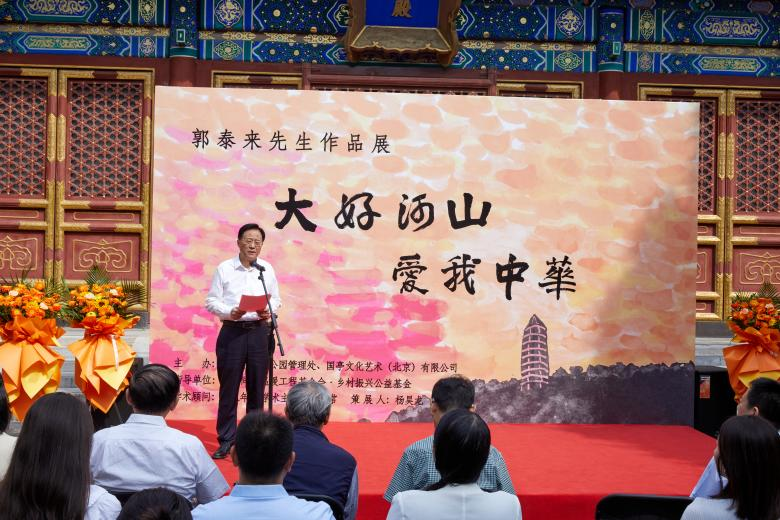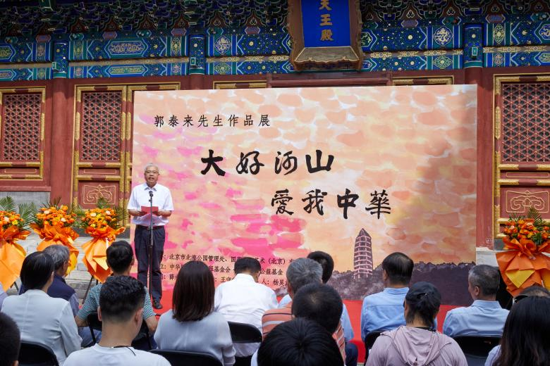9月18日,在北京市北海公园——阐福寺,由北京市北海公园管理处及国亭文化艺术(北京)有限公司主办的一场以“大好河山,爱我中华”为主题的艺术展览于上午9时隆重开幕。本次画展主要展览郭泰来先生的近期作品“大好河山”系列及神舟11搭载作品《让我们过坦荡的生活》。“大好河山”系列选取各地代表性风景,以自己独特的解构形色的方式将中国的丰美风光与东西方的艺术语言相融合,为观众带来一场艺术盛宴。著名书画家薛永年先生为此次画展的学术顾问,乡村振兴公益基金杨昊龙先生担任策展人。