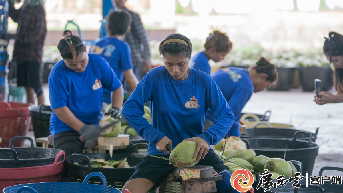 “最多时一天加工6个集装箱冷柜,通过海运发往中国。”来自广西的公司总经理于礼佳介绍,这里是泰国香水椰的重要产地,而香水椰很受中国消费者欢迎。