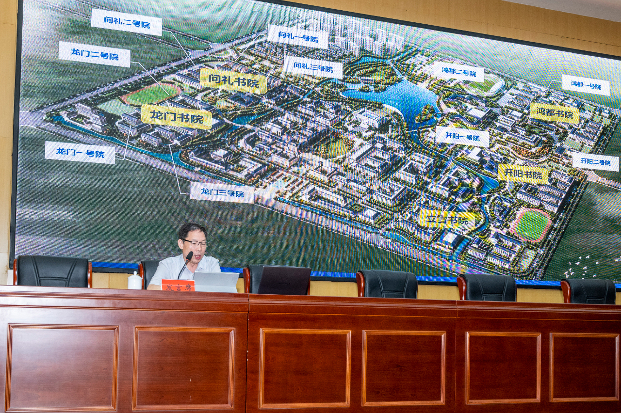 河南省教育厅思想政治工作处处长陈凯,洛阳市副市长任丽君,洛阳市教育局局长于晓峰、伊滨区教体局局长陈建银;学校党委书记郭改英,校长郭海明,副校长赵海彦、张运礼,以及相关职能部门负责人、各住宿书院领导班子成员、导师代表、学生代表参加本次研讨会。