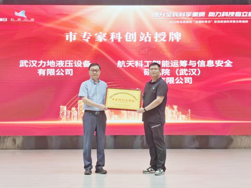 张若光为武汉力地液压设备有限公司、航天科工智能运筹与信息安全研究院(武汉)有限公司专家科创工作站授牌。