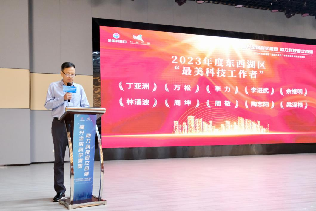刘利龙宣读荣获2023年度东西湖区“最美科技工作者”人员名单。