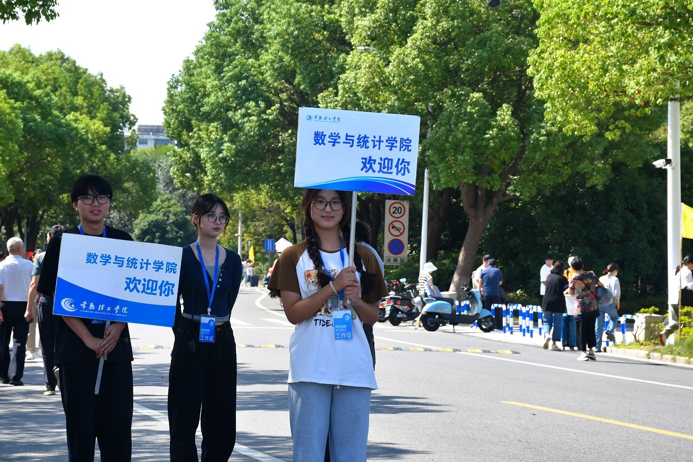 为迎接新生,各学院创意满满,亮点频出。外国语学院为每一位新生送上了特别定制的“开学大礼包”——外院非遗宝贝帆布袋,以及学姐学长的祝福明信片和手写书签。时光慢递,信语情寄,商学院在迎新点设置了“未来信箱”,小萌新们在新的起点写下了对大学生活的期望和对未来自己的寄语:“平安喜乐”“学业有成”“成为更好的自己”......一笔一划都是期许,一字一句皆是情谊,一张张明信片寄托了同学们对大学生活的憧憬和想象。“师范有你,满心欢喜”,师范学院开展迎新五个“一”特色活动,一份礼品、一张合影、一起签名、一首歌曲、一份关怀。不负“师”光,扬“范”启航展板前,师生合影,展望未来;满满人文关怀展板旁,器乐、声乐、舞蹈轮番上阵,尽显师范特色。今年,电气与自动化工程学院以紫色为迎新主基调,报到点工作人员的紫色工作服、紫色气球拱门、紫色班牌等,传递着紫气呈祥、开学大吉的美好祝愿。特色机器人展示、舞蹈快闪活动、幸运抽奖等为迎新营造了活跃的气氛,让新同学与新环境快速“融冰”。