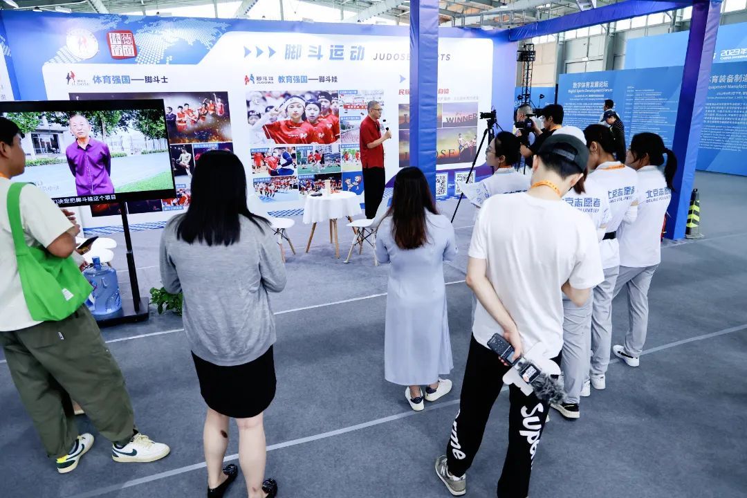 除布展外,脚斗运动创始人、全国脚斗运动推广委员会常务副主任、北京脚斗士协会会长吴彦达还受邀出席2023年服贸会体育服务专题主题推介活动,向外界分享和展示脚斗运动。