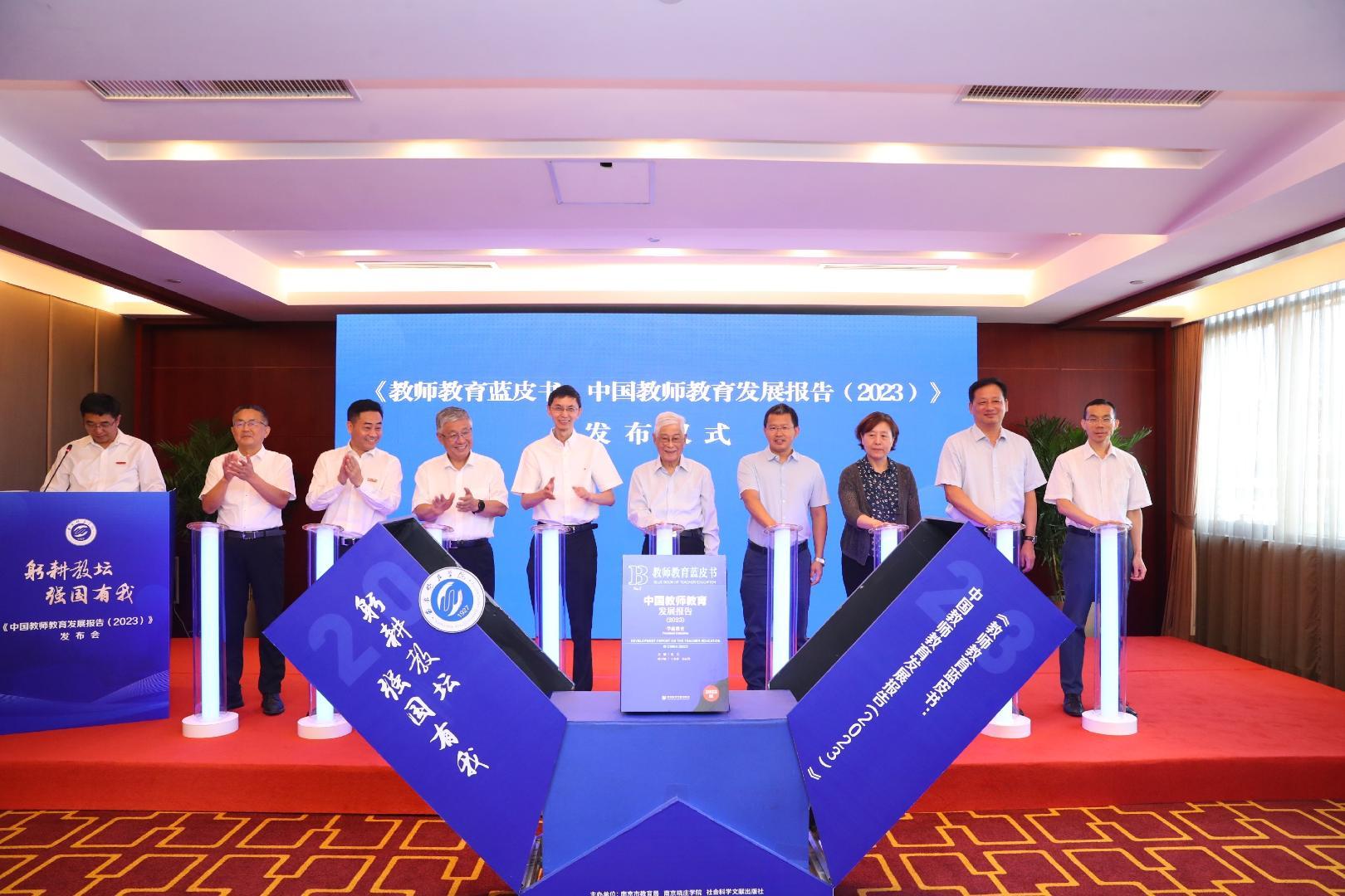 中宏网江苏9月4日电 9月3日,由南京市教育局、南京晓庄学院、社会科学文献出版社联合主办的《教师教育蓝皮书 中国教师教育发展报告(2023)》发布会在北京举行。民进中央、中国陶行知研究会、江苏省教育厅、南京市教育主管部门领导与相关院校代表、行业专家等齐聚一堂,共话中国教师教育新发展。