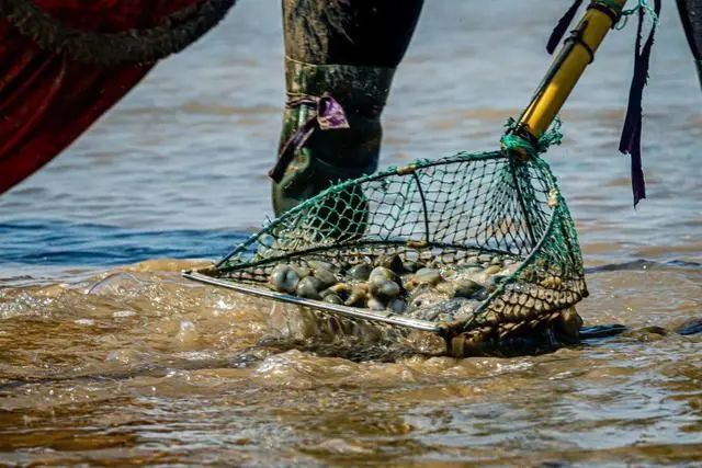 这些贝类海鲜就被搁置在沙滩或泥滩上了