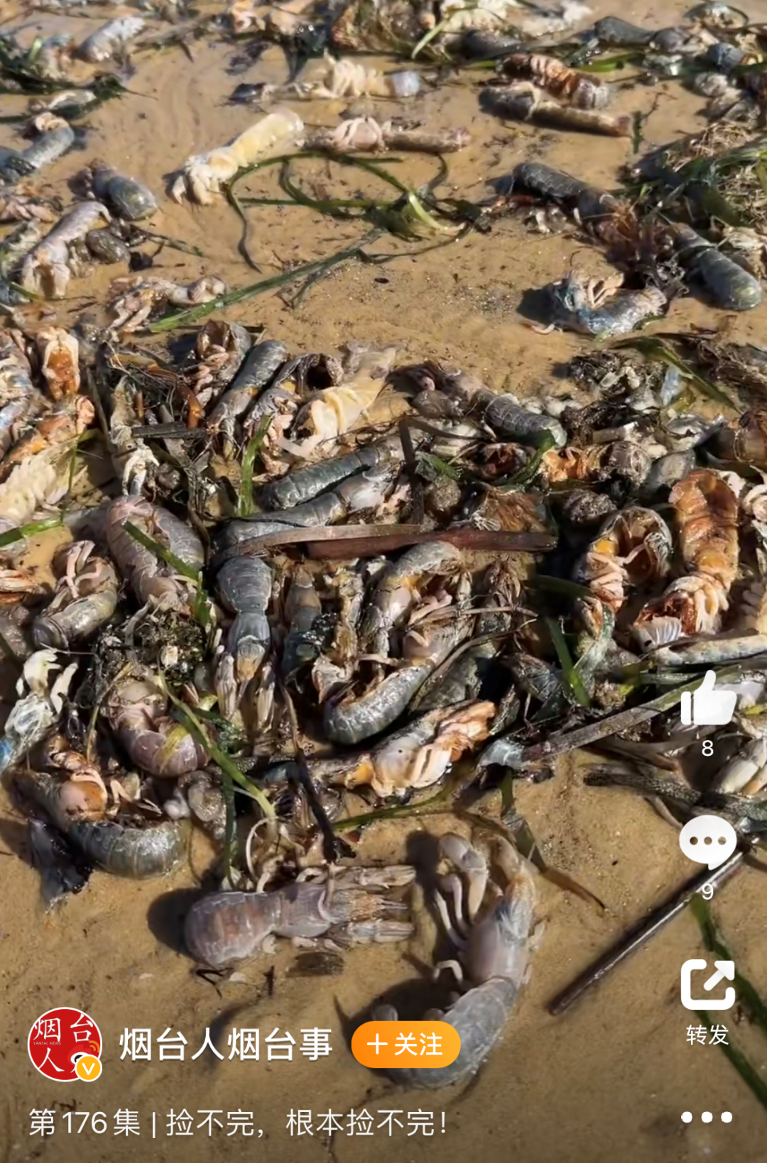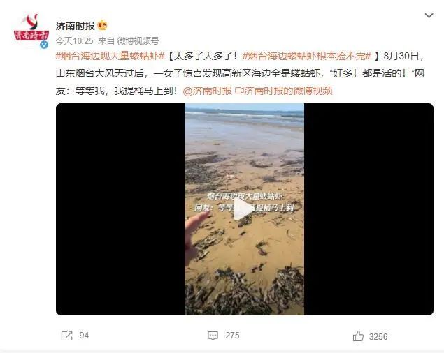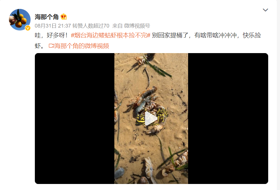话题#烟台海边蝼蛄虾根本捡不完#