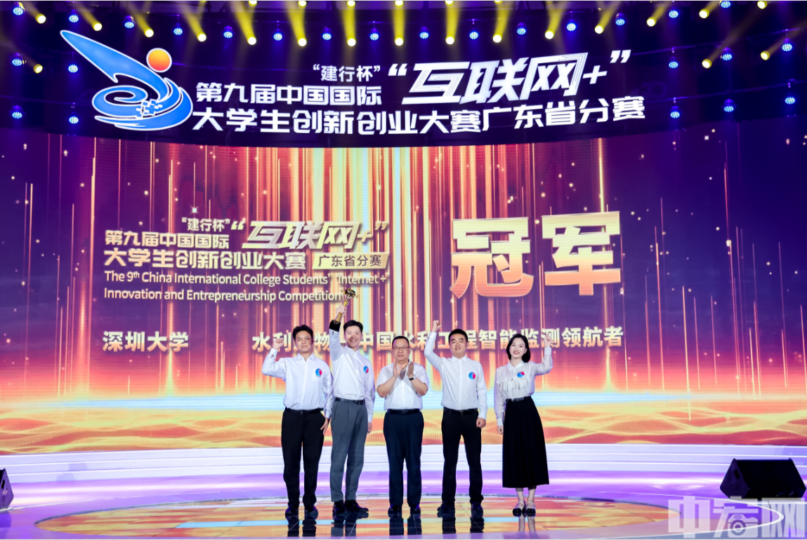 中宏网深圳8月30日电(记者 肖柏青 邓居彬)8月16日,“建行杯”第九届中国国际“互联网+”大学生创新创业大赛(以下简称:“互联网+”大赛)广东省冠军争夺赛暨颁奖仪式在深圳大学落下帷幕。群雄逐鹿,最终6支队伍脱颖而出进入冠军争夺赛。又经一轮激烈比拼后,深圳大学“水利万物——中国水利工程智能监测领航者”项目以总分1125分夺得桂冠。