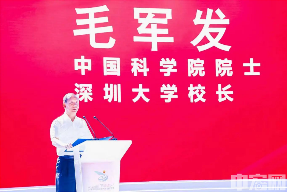 中国科学院院士、深圳大学校长毛军发代表深圳大学对全体参赛团队取得佳绩表示祝贺。他表示,作为地处粤港澳大湾区和中国特色社会主义先行示范区的高校,深圳大学建校40年来将敢闯会创、改革创新的理念融入血液,致力于为国家培养高水平的创新创业人才,引领社会的进步和发展。毛军发说在比赛过程中,各参赛团队集中展示了广东“双创”教育的丰硕成果,深圳大学有幸学习到各兄弟院校的优秀经验,必将共同开启创新创业教育改革的新征程。