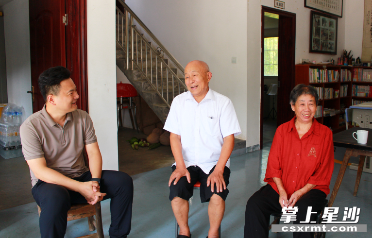 农家书屋内,金井镇党委副书记、镇长刘威和“长沙好人”寻民强、张芝兰夫妻亲切沟通。袁语丹 摄