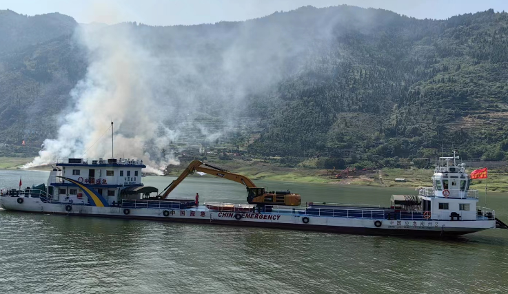 应急管理部紧急调动荆州水上工程抢险救援队,派出“中国应急荆州1号”“中国应急荆州 2号”赶赴事发水域增援。两艘救援船舶主要承担水上消防灭火和受灾群众转移等任务。