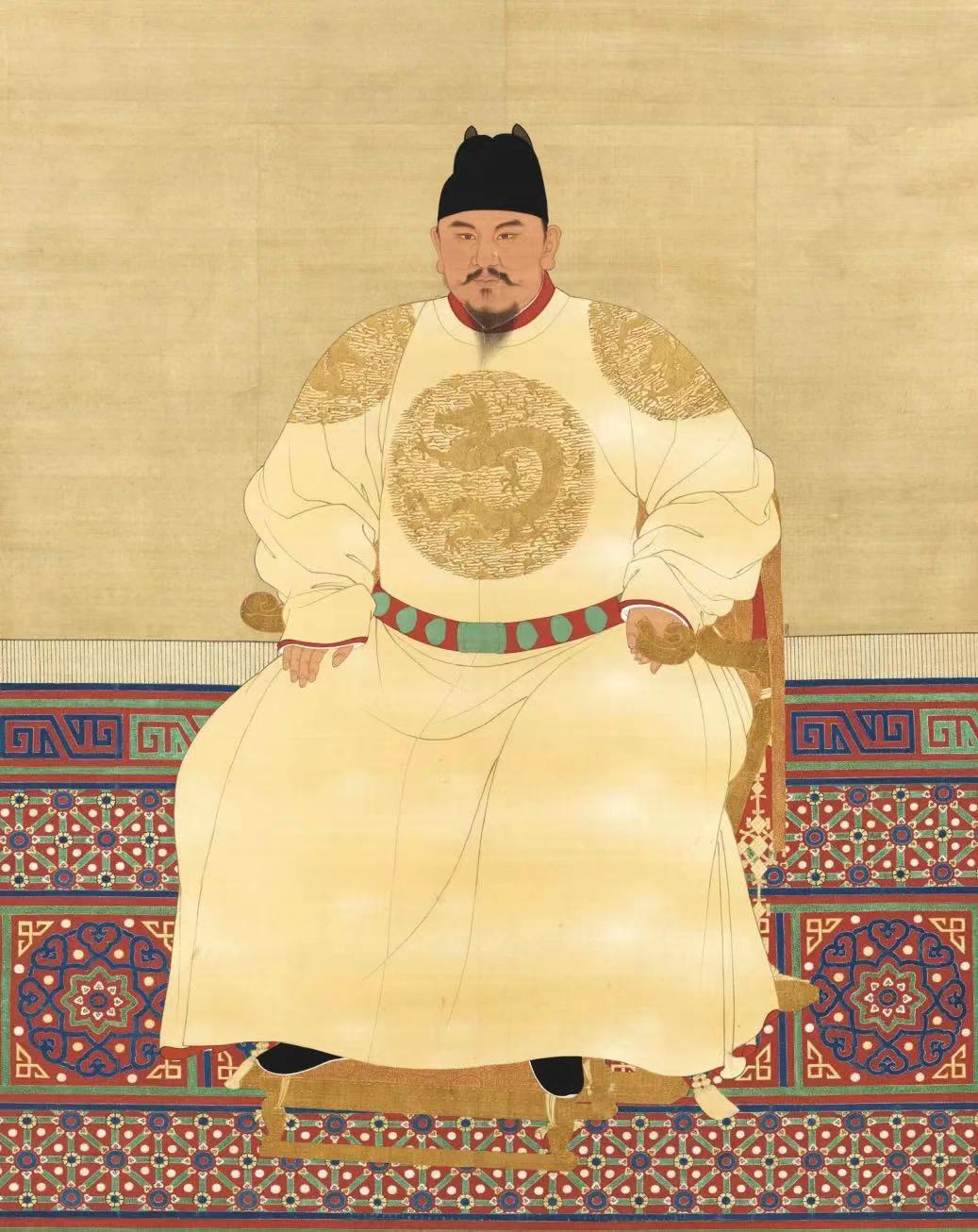 明太祖坐像(正像),明代,绢本设色,为南薰殿旧藏的两张明太祖正像之一,现藏台北故宫博物院
